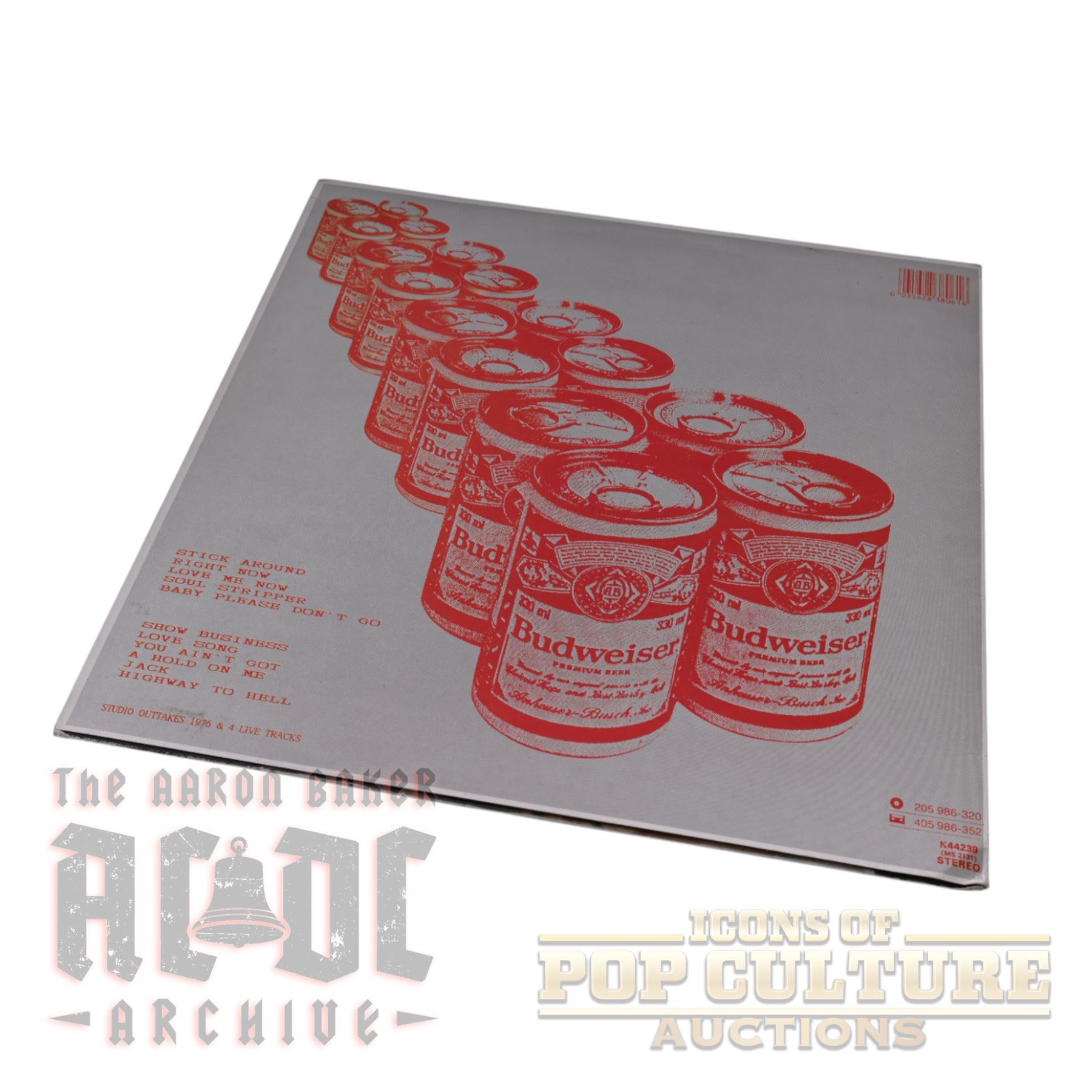 This listing is for Maximum Overdrive, an unofficial AC/DC compilation LP released in Germany in 1987 on the Super Fighter label, catalog number LP-003 (also seen as K44239). It contains a mix of studio outtakes from about 1976 plus live recordings spanning roughly 1976-1979. The track list includes songs such as “Stick Around,” “Right Now,” “Love Me Now,” “Soul Stripper,” “Baby Please Don’t Go,” “Show Business,” “You Ain’t Got A Hold On Me,” “Jack,” and “Highway To Hell.” This is a bootleg release rather than an official AC/DC title.
