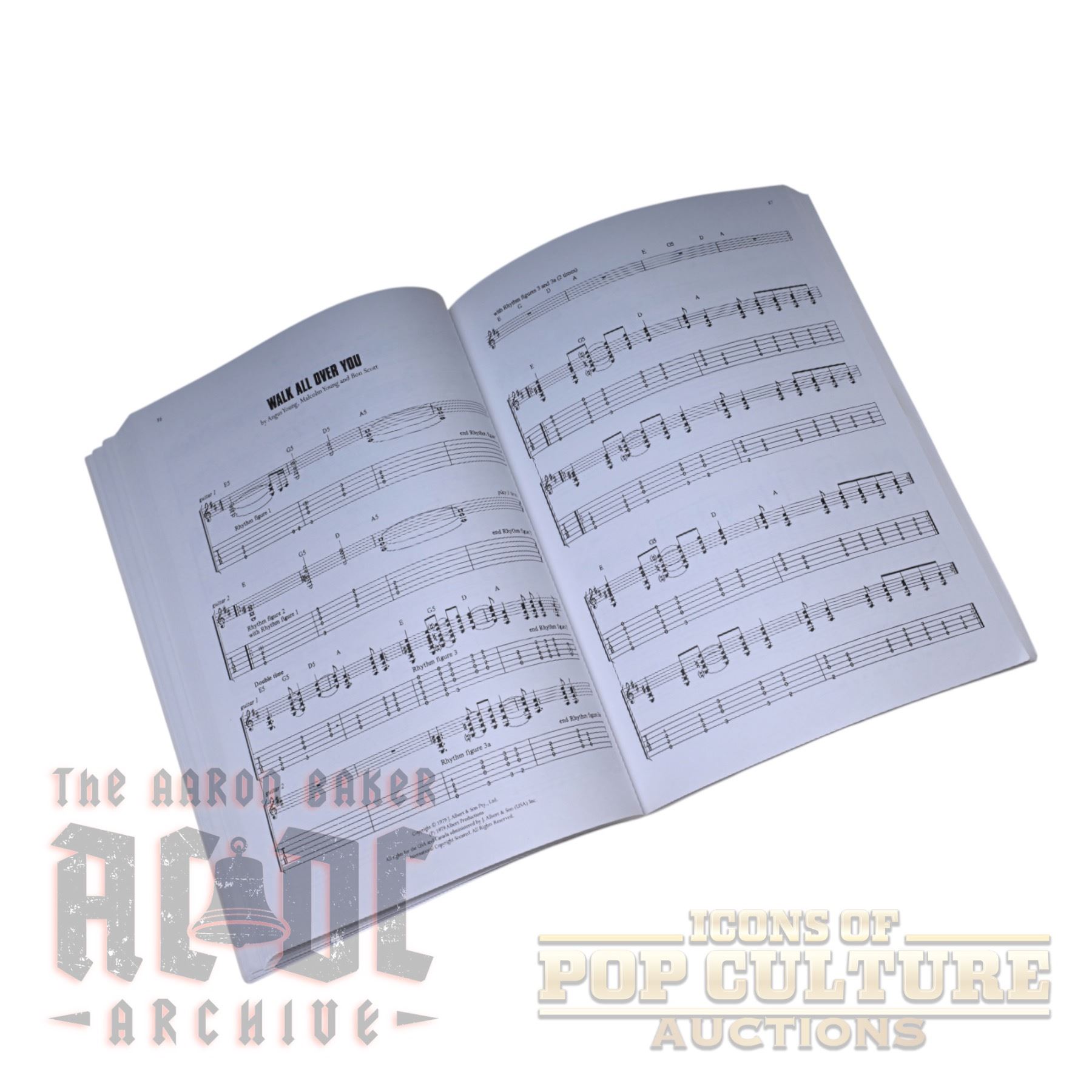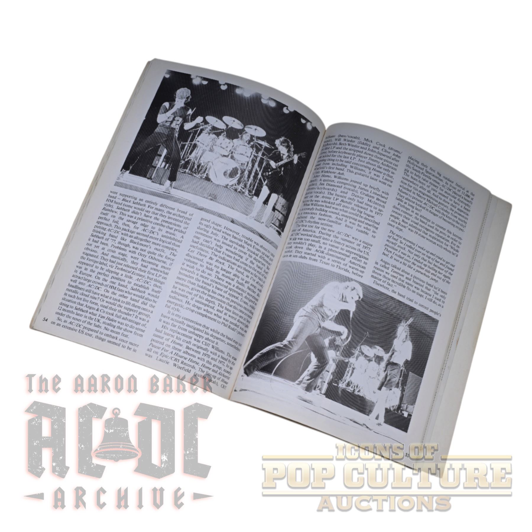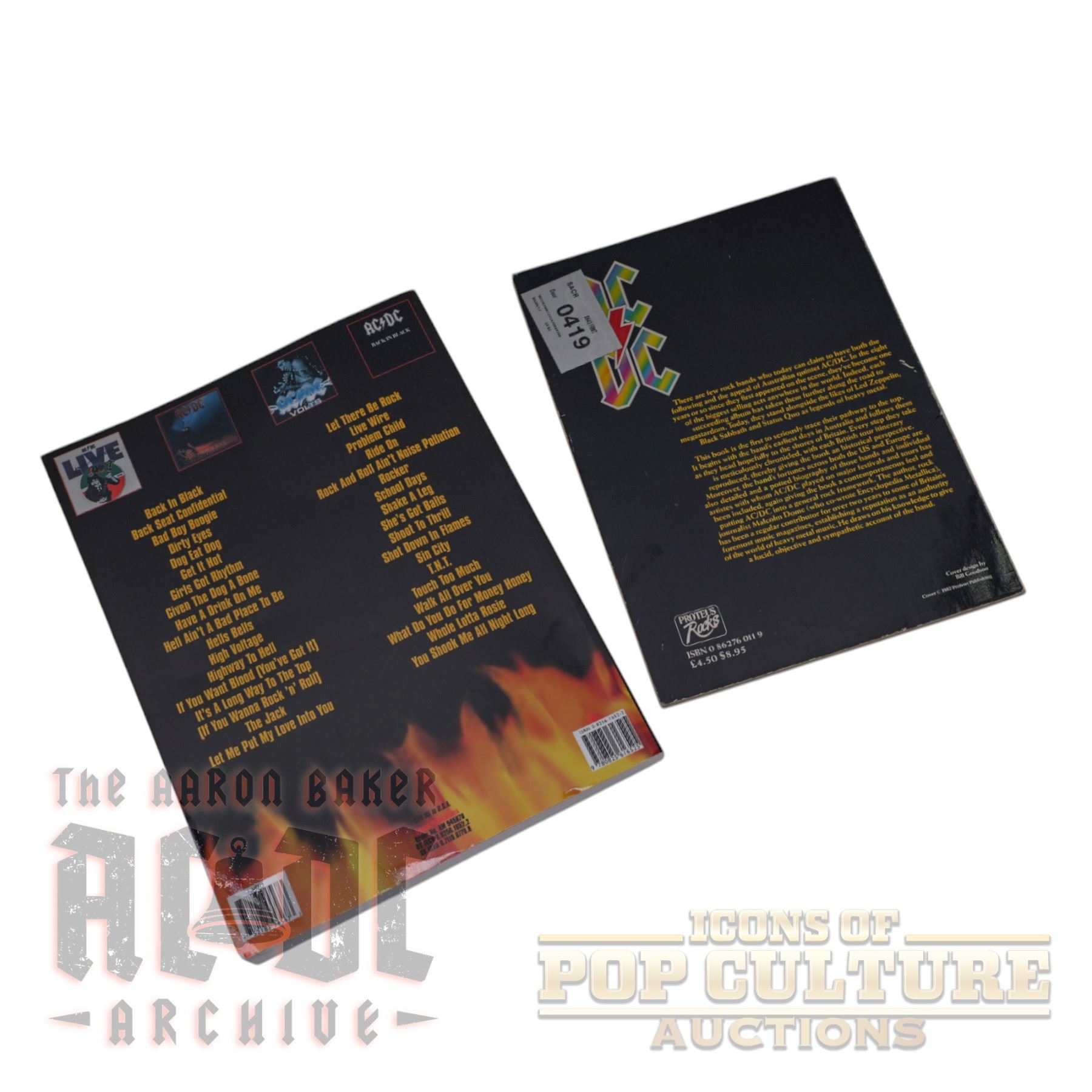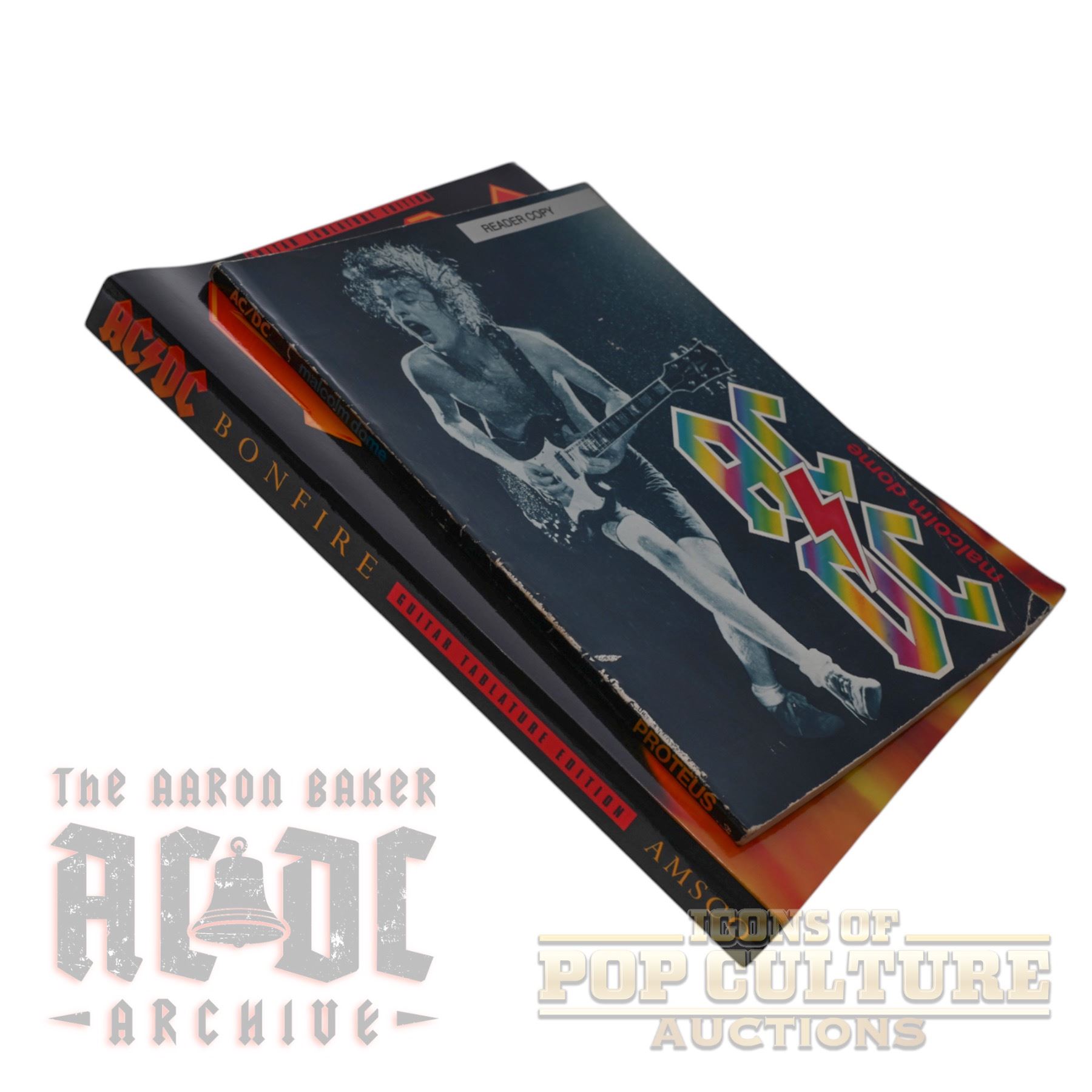 This lot features two AC/DC related books. The first is the Bonfire Guitar Tablature Edition, a comprehensive collection of guitar sheet music and tablature for AC/DC songs, designed for musicians and fans alike. The second is AC/DC by Malcolm Dome, an in-depth look at the band’s history, featuring black-and-white photographs and detailed text on their rise to fame. Together, these volumes provide both a musical and historical perspective on one of rock’s most enduring bands.