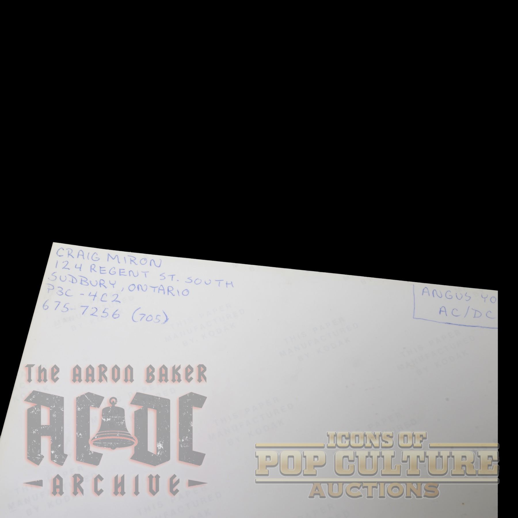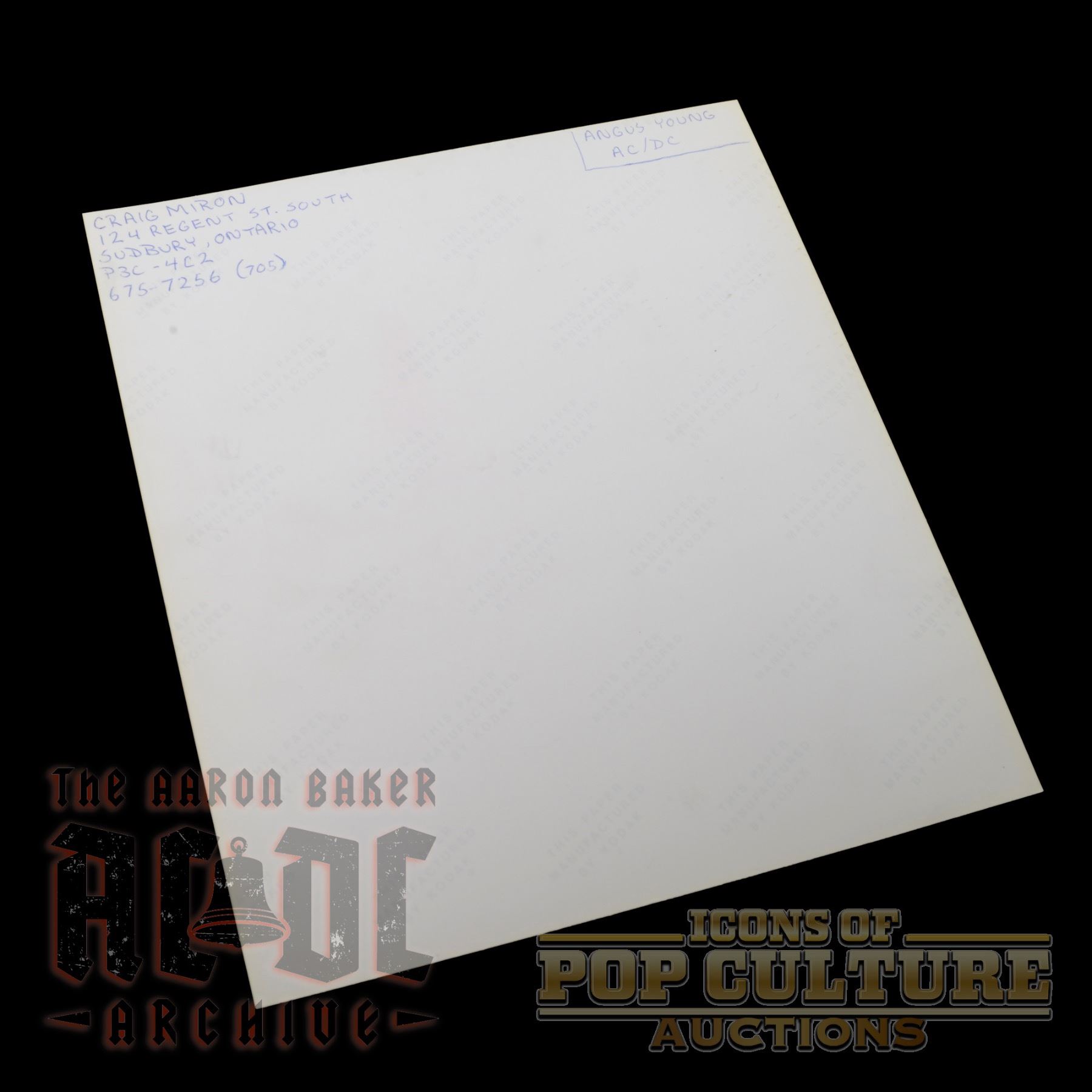 The back of the photo features handwritten identification (“Angus Young – AC/DC”) and photographer details, verifying its authenticity and adding historical value.