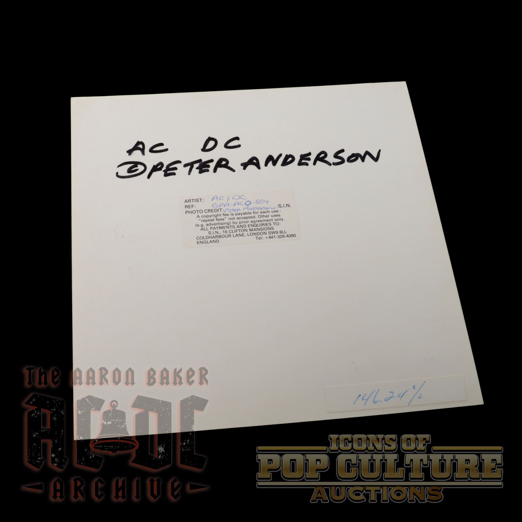 The reverse features a photographer’s credit sticker and handwritten notations, confirming its authenticity and provenance as an original print from Anderson’s archives.