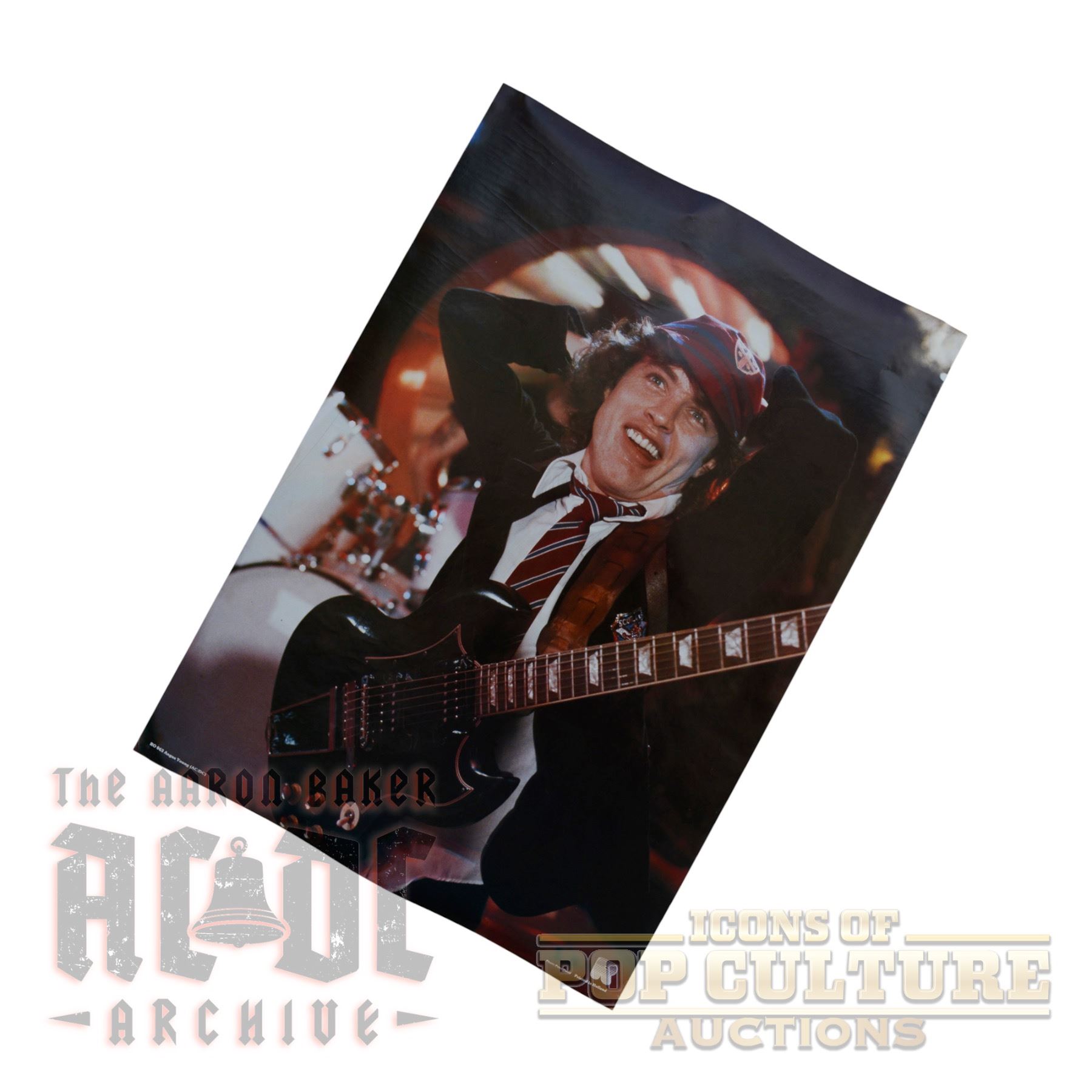 This is an original commercial poster featuring Angus Young of AC/DC, measuring 23.5" x 33.5". Sold in various record stores, the poster captures Angus in his signature schoolboy outfit with guitar in hand, delivering the high-energy presence that made him one of rock’s most iconic performers. With bold imagery and vibrant detail, this vintage piece is a striking tribute to the band’s legendary lead guitarist and is a classic collectible for AC/DC fans.
