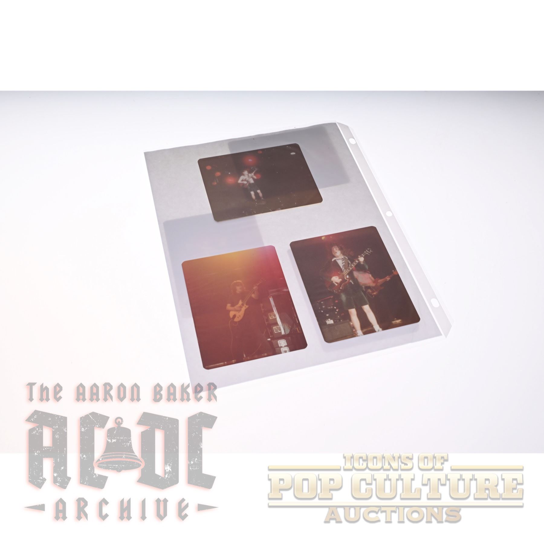 Offered here is a collection of six original color photographs measuring approximately 3.5" x 4.5" featuring AC/DC captured live on stage during the Bon Scott era. These images show the band in performance, with striking shots of Bon Scott on vocals, Angus Young in his trademark schoolboy outfit, and additional band members in action under the stage lights. Taken during the late 1970s, these photos present an authentic glimpse into AC/DC’s raw and energetic live shows from the years when Bon Scott fronted the band. Original photographs from this era remain highly sought after by collectors and fans, making this set a unique piece of rock history.