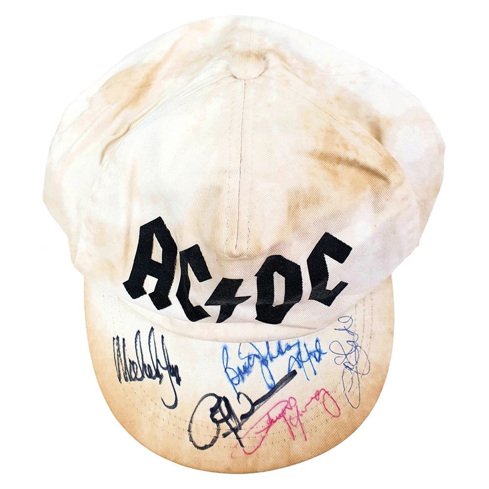 Accompanied by a certificate of authenticity from Tracks, and by a letter of provenance from the original owner and recipient: “I received the boiler suit and cap as video props for the shooting of ‘Are You Ready’ from the ‘Razors Edge’ album released in 1990. I had tickets to see AC/DC at Wembley in April 1991 and my dad saw an advert in his daily newspaper, the Telegraph, offering fans who had tickets to take part in a video shoot as an extra…the location of the shoot was secret. We ended up in Windsor, Berkshire and handed our suits and caps. It was the best day jumping up and down recorded for the video to be released on 28/3/91. There were what seemed like hundreds of takes and during one of the breaks we were moved from the front of the stage to the side walkways next to the stage. Then Brian Johnson came over and I asked him to sign my cap, which he did, and took it over to the other band members to sign for me. The whole experience was amazing and to see myself in an AC/DC video is one of the best highlights of my life.â€
