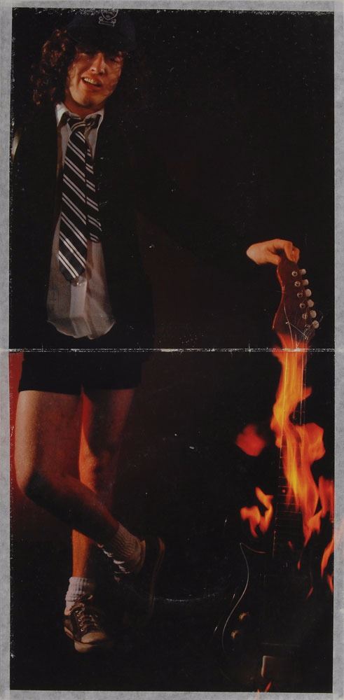 Scarce Atlantic Recording 45 rpm EP record for 'Girls Got Rhythm,' measures 7.25 x 14.75 open, signed on the band image in blue ballpoint, "Bon," "Malcolm Young," "Cliff, AC/DC," "Angus, AC/DC," and "Phil, AC/DC." In fine condition, with scattered creasing and a 'ring of wear.' Accompanied by a full letter of authenticity from REAL. An uncommon title and format enhanced furthermore by the presence the band's legendary second singer.