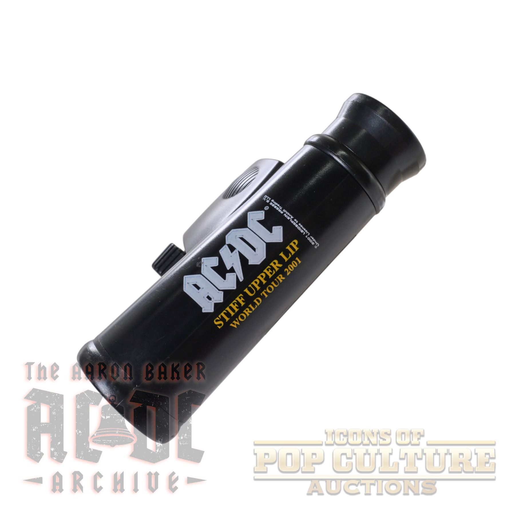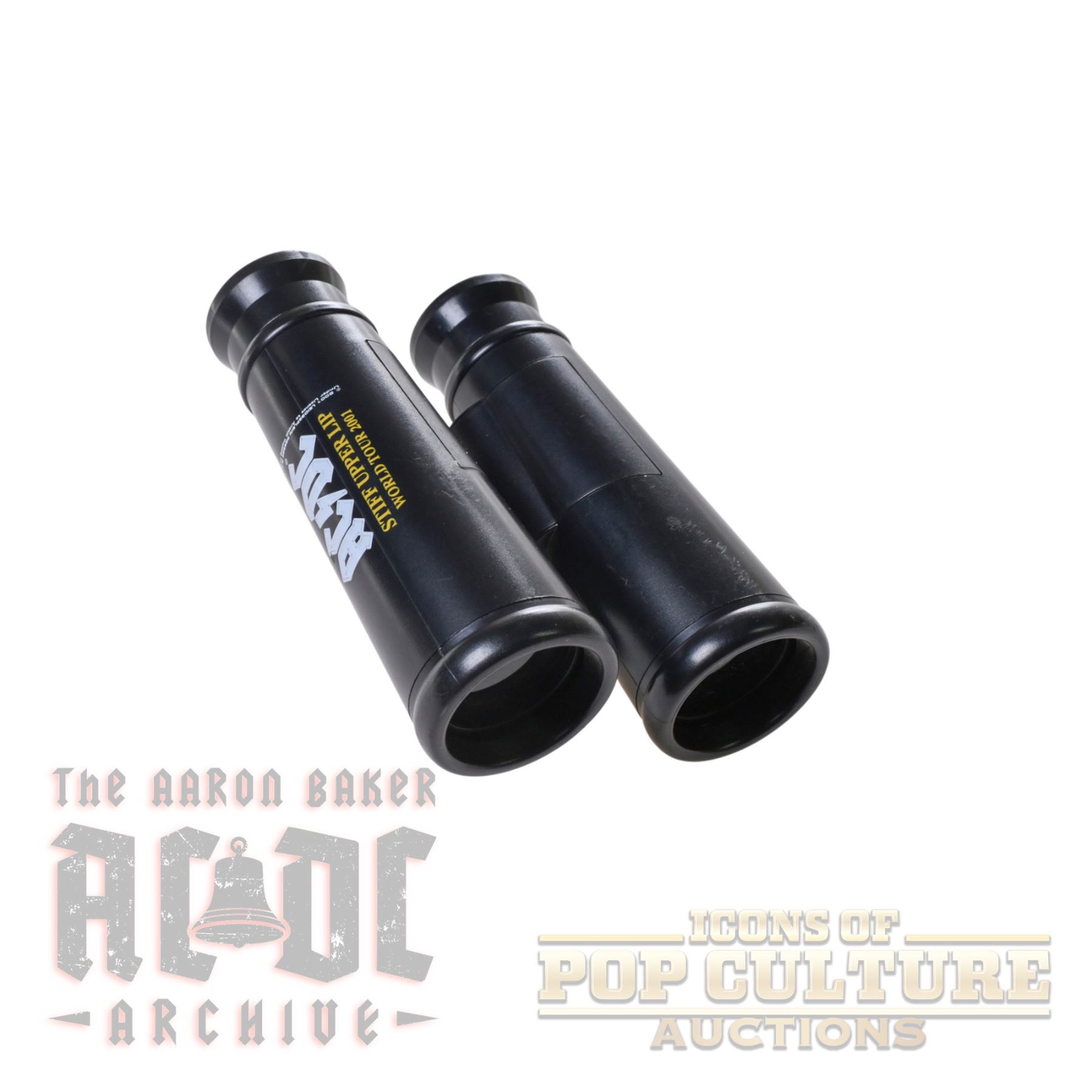 A unique and playful piece of AC/DC memorabilia, these promotional binoculars were released in conjunction with the "Stiff Upper Lip World Tour" in 2001. Featuring the iconic AC/DC logo and "Stiff Upper Lip World Tour" printed in bold lettering, these binoculars served as a tongue-in-cheek marketing tool, highlighting their practicality for fans viewing the band at large stadium venues. Measuring approximately 5" x 4.75" x 2", the binoculars are compact yet sturdy.