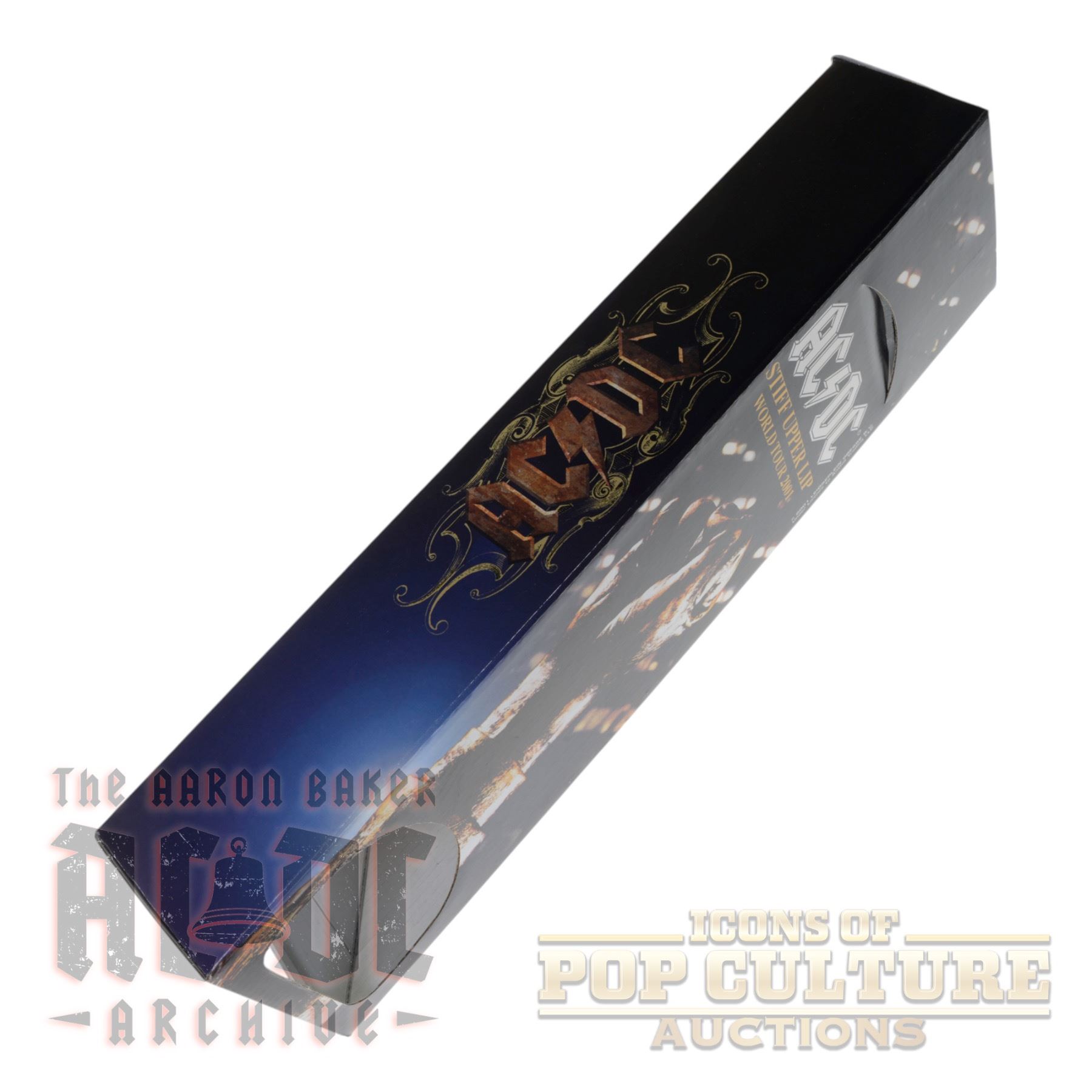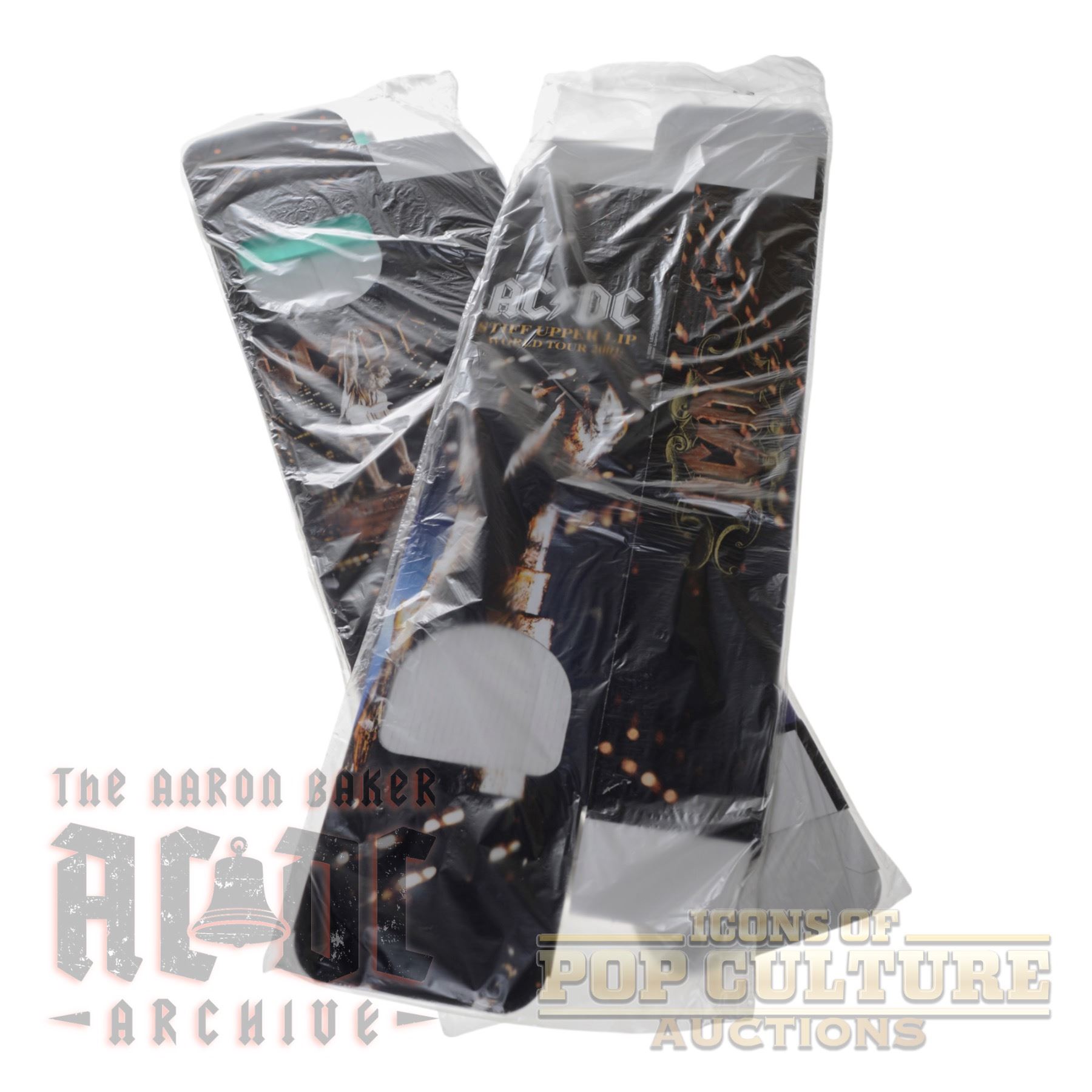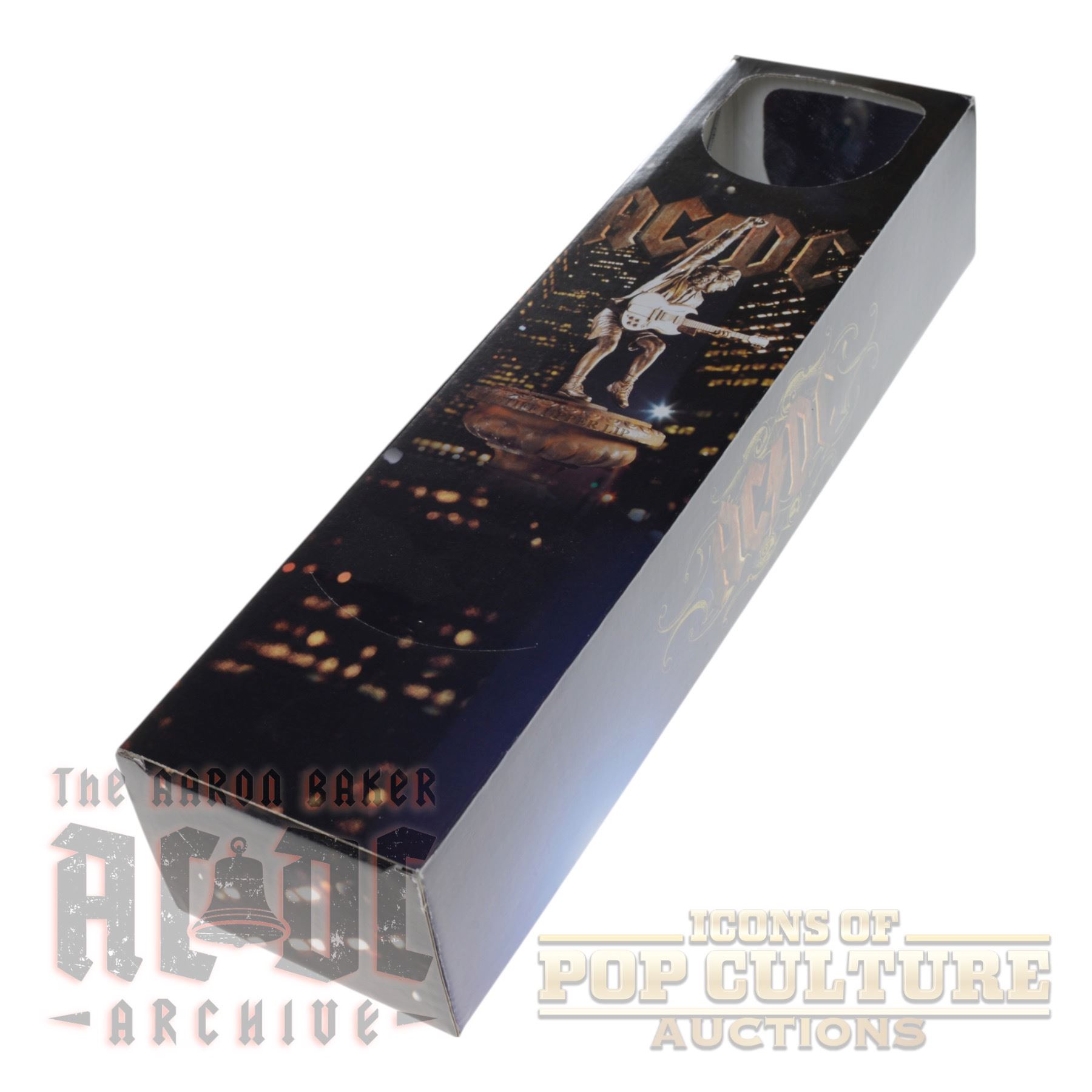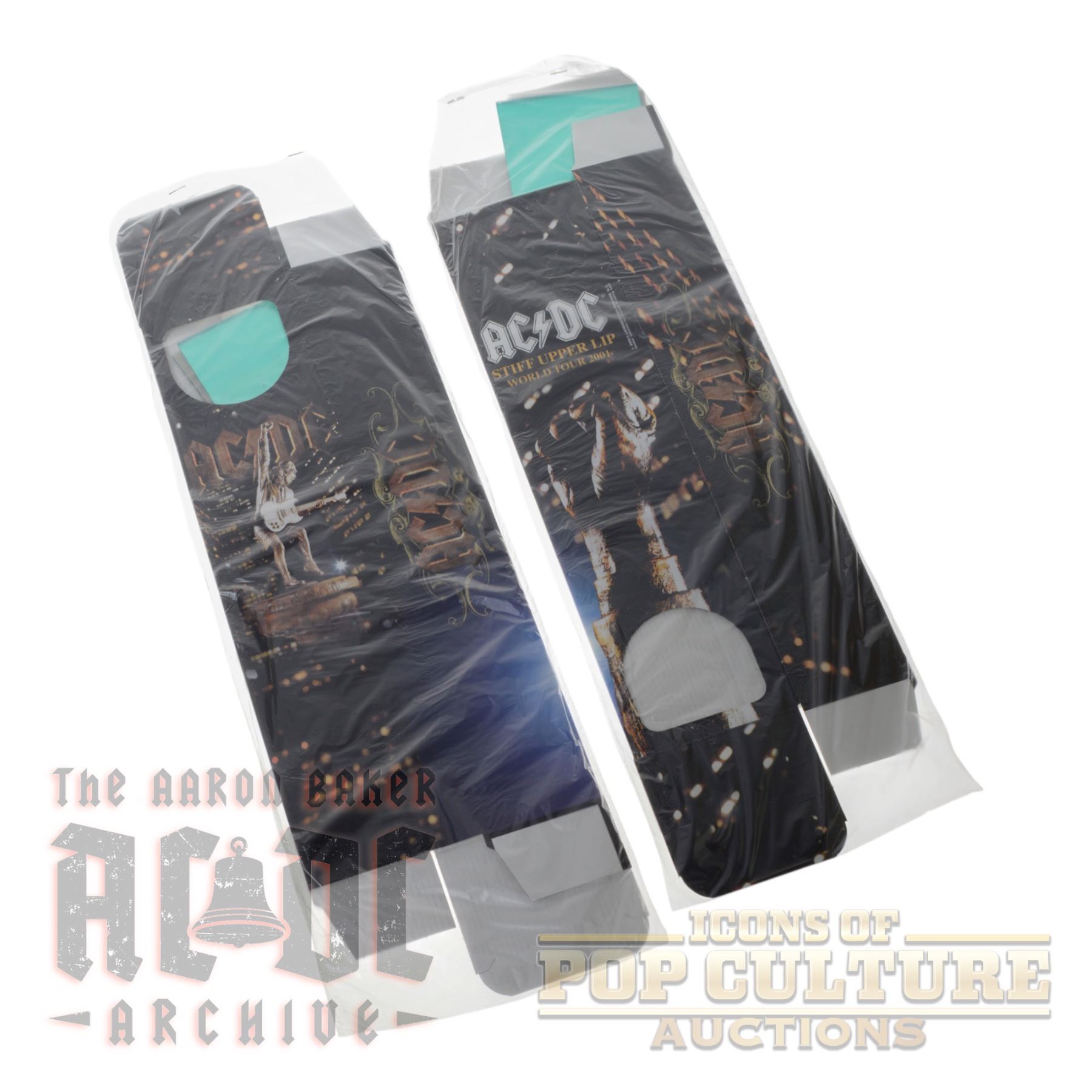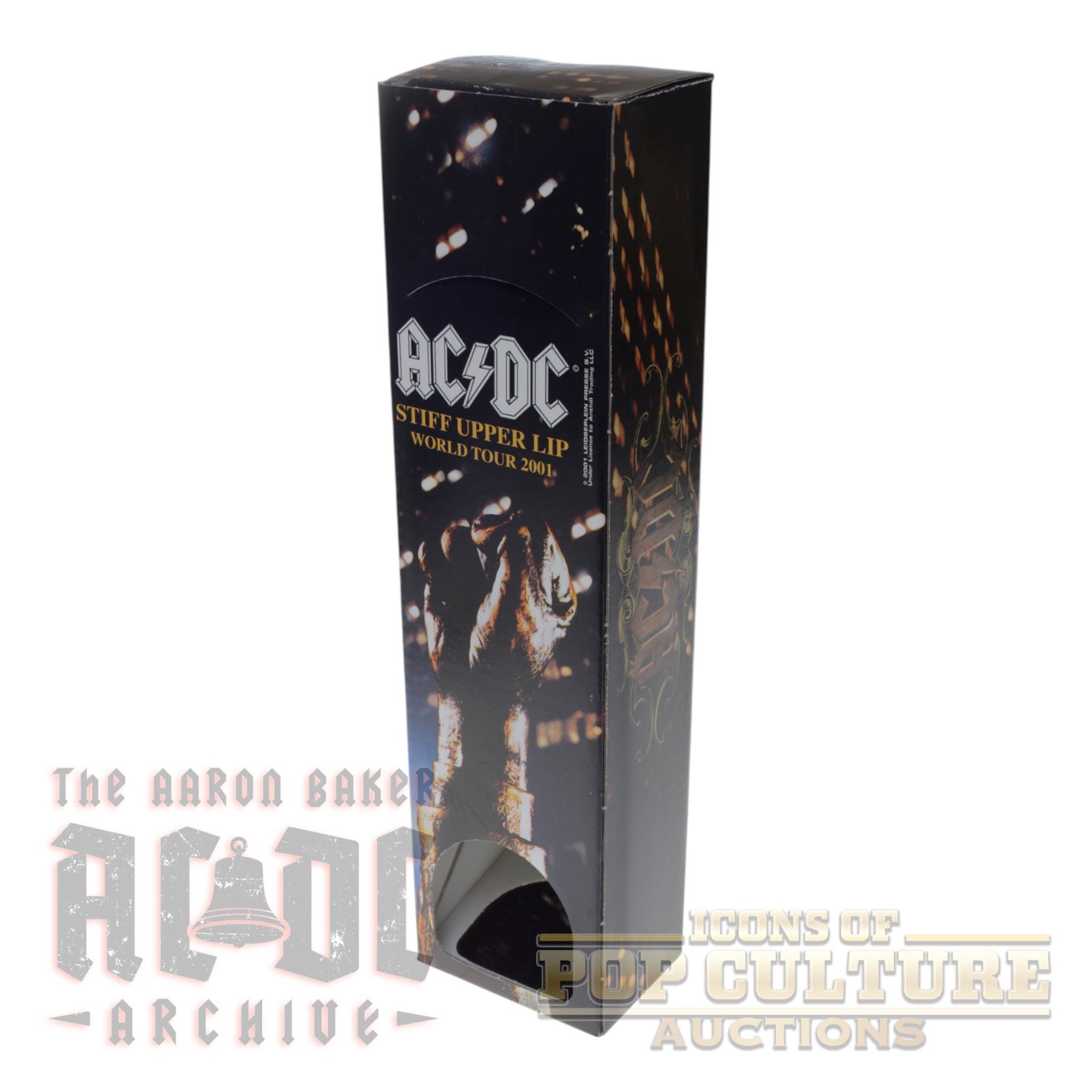 This is a rare set of two original AC/DC promotional periscopes created for the 2001 Stiff Upper Lip World Tour campaign. Each die-cut cardboard display stands approximately 15.5" tall and features striking tour artwork, including the iconic Angus Young statue imagery from the tour stage design. These unused pieces remain flat-packed in their original plastic wrap, just as they were issued to record stores and promotional partners. One unfolded example is shown for reference and is not included in the set. A unique piece of tour ephemera from the band’s legendary late-era run, perfect for AC/DC collectors and rock memorabilia fans.