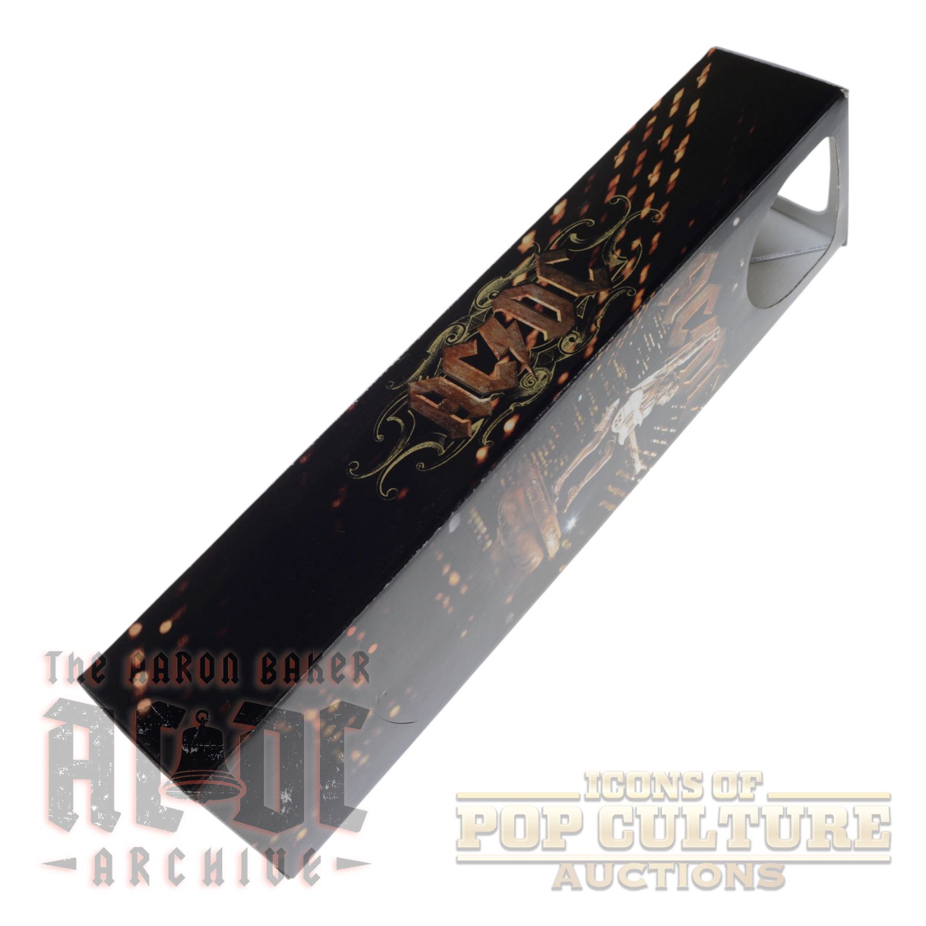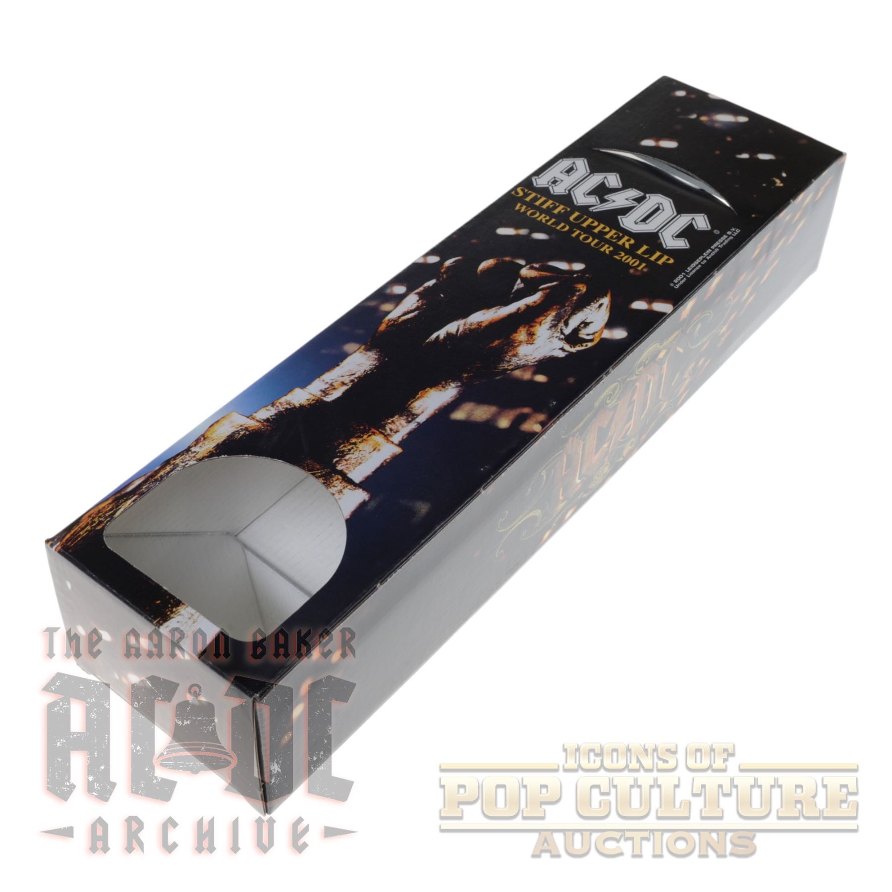 This is a rare set of two original AC/DC promotional periscopes created for the 2001 Stiff Upper Lip World Tour campaign. Each die-cut cardboard display stands approximately 15.5" tall and features striking tour artwork, including the iconic Angus Young statue imagery from the tour stage design. These unused pieces remain flat-packed in their original plastic wrap, just as they were issued to record stores and promotional partners. One unfolded example is shown for reference and is not included in the set. A unique piece of tour ephemera from the band’s legendary late-era run, perfect for AC/DC collectors and rock memorabilia fans.