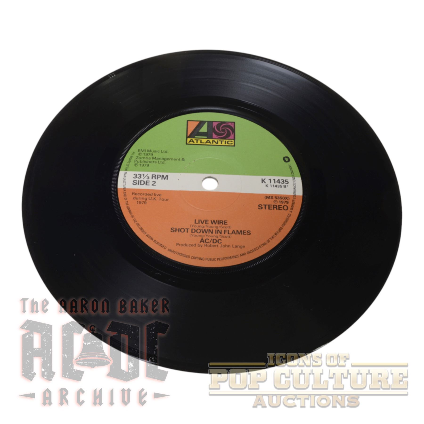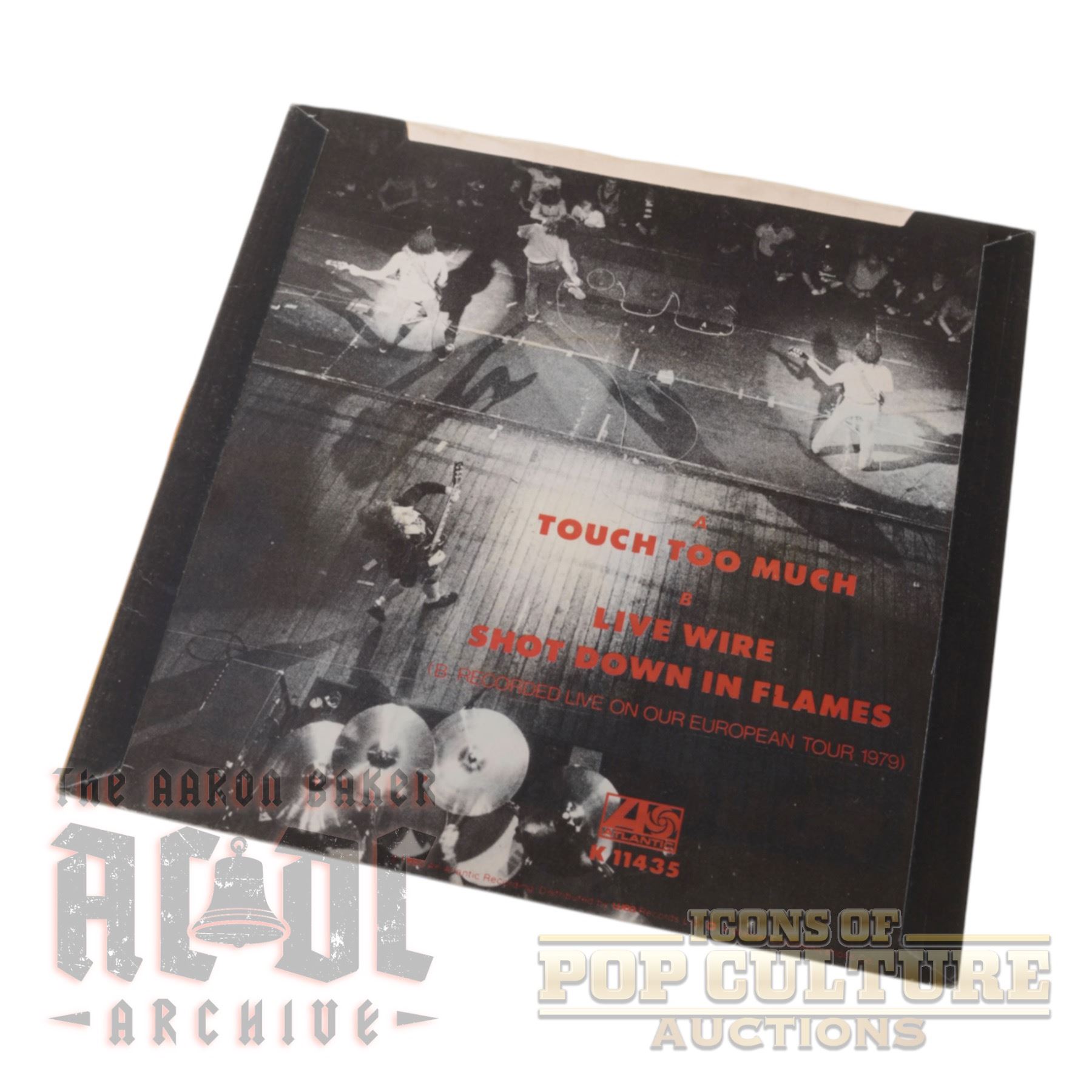 Issued in the UK in January 1980, AC/DC’s “Touch Too Much” single (catalog number K 11435) captures the band at full throttle during the Bon Scott era. Released on Atlantic Records, this unique 7" features a rare format. Side A plays at 45 RPM with the title track “Touch Too Much,” while Side B runs at 33⅓ RPM and includes two blistering live performances: “Live Wire” and “Shot Down in Flames.” These live tracks were recorded during AC/DC’s 1979 European tour and showcase the band’s explosive stage presence at the peak of their Highway to Hell momentum. Produced by Robert John “Mutt” Lange, this single marked the final UK release before Bon Scott’s untimely passing. A standout in the band’s catalog, it offers a powerful blend of polished studio production and raw live energy, making it an essential piece for any AC/DC fan or vinyl collector.