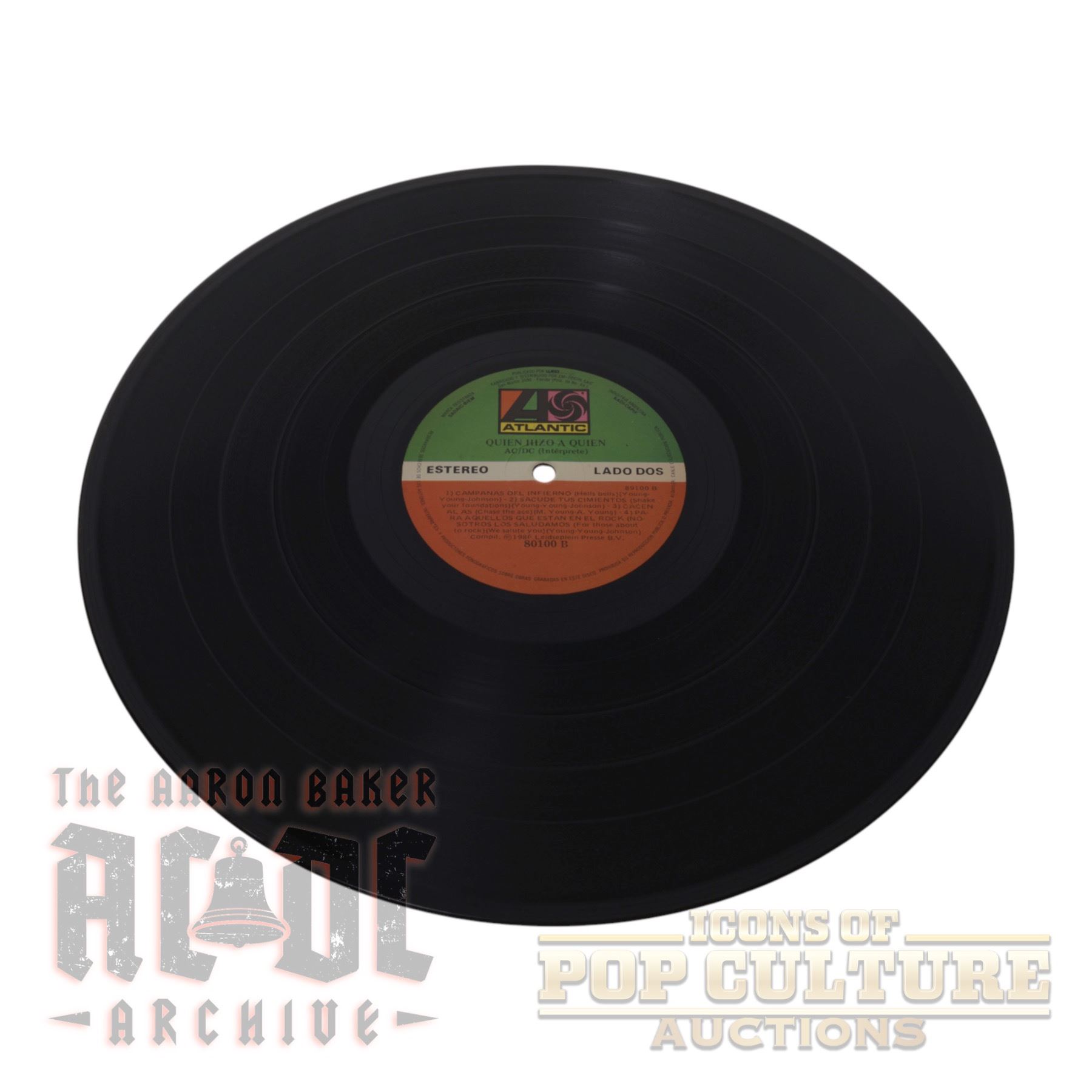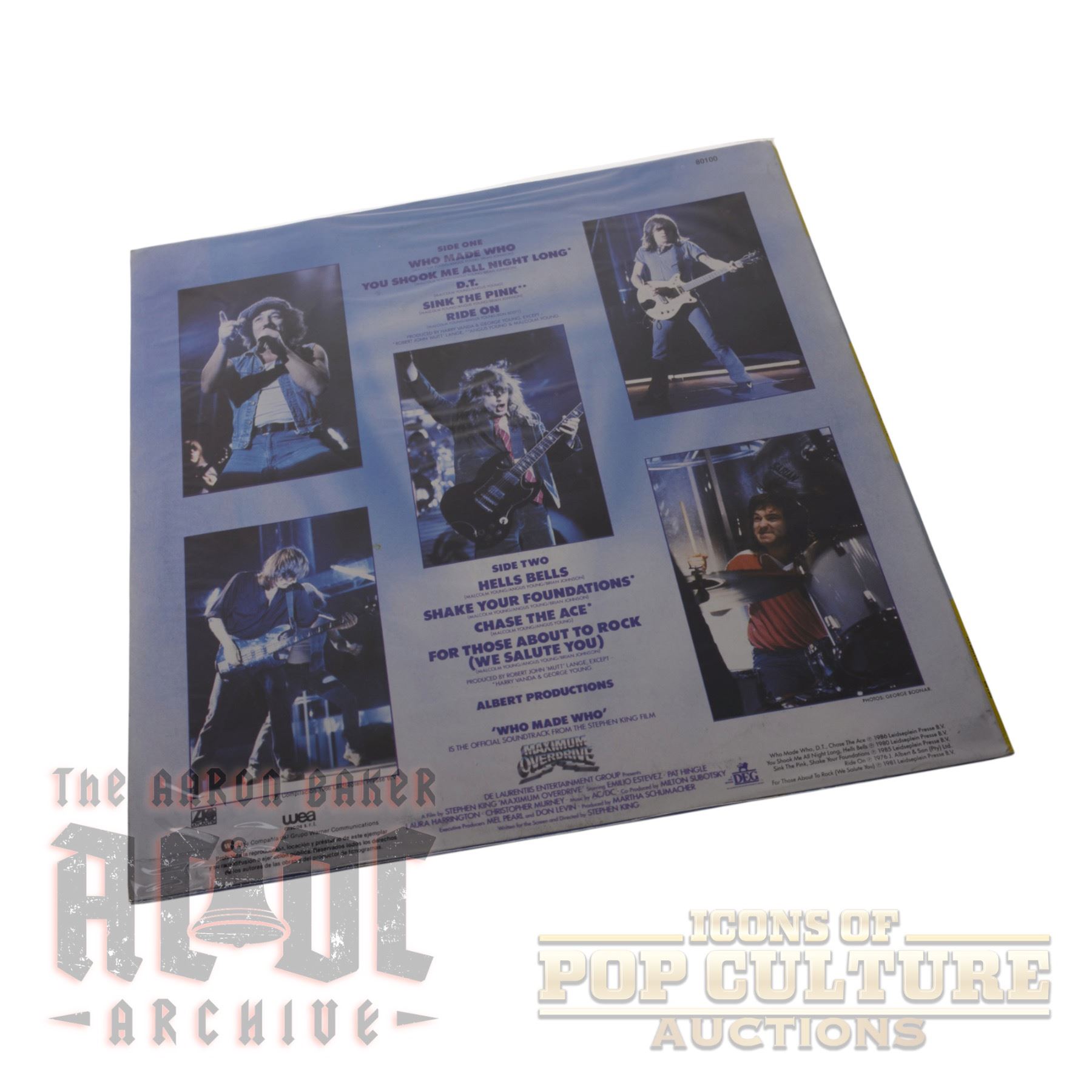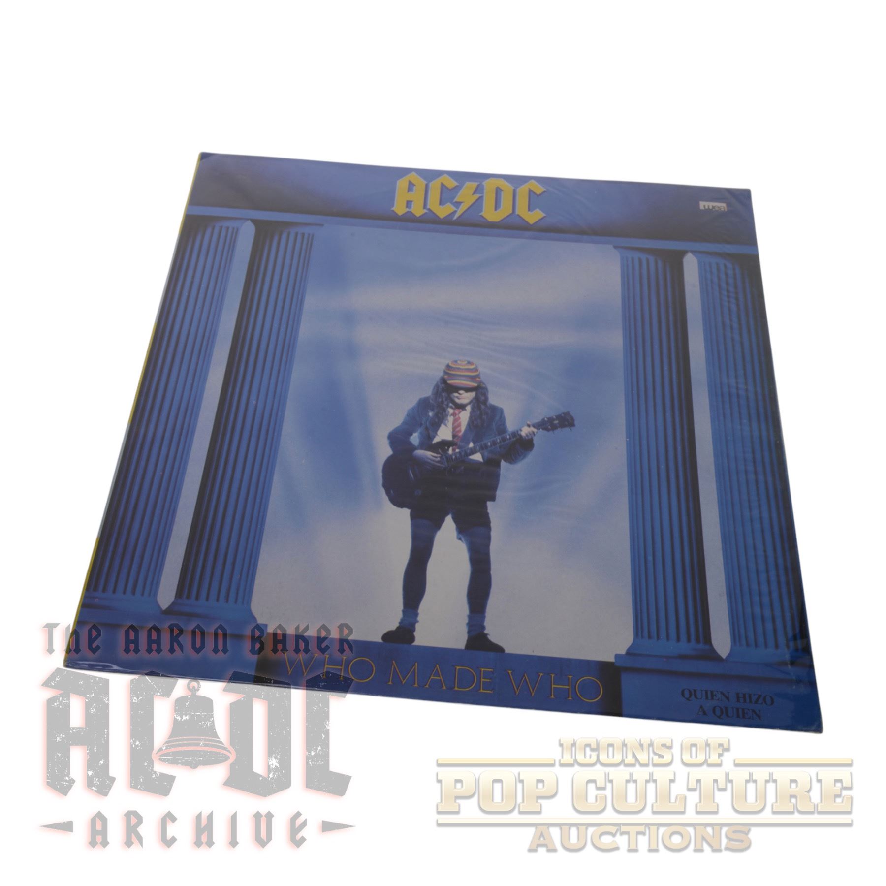 This is an original Spanish pressing of AC/DC’s Who Made Who, released in 1986 by Atlantic/WEA under catalog number 80100 A. Issued with the Spanish title Quién Hizo a Quién, this LP served as the official soundtrack to Stephen King’s film Maximum Overdrive. The album features a mix of classic AC/DC tracks alongside new material, including the title track “Who Made Who” and instrumentals such as “D.T.” and “Chase the Ace.” The back cover highlights live performance images of the band, while the labels display the Spanish-language titling. This pressing represents a collectible international edition of one of AC/DC’s iconic mid-1980s releases.
