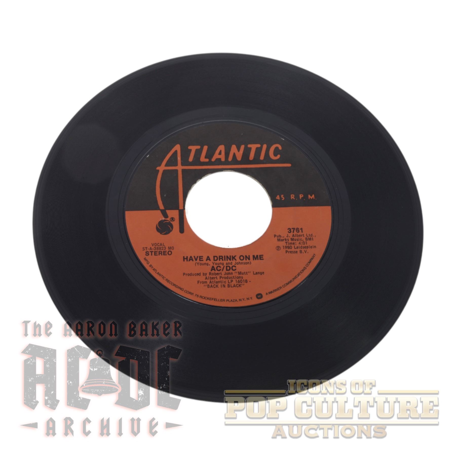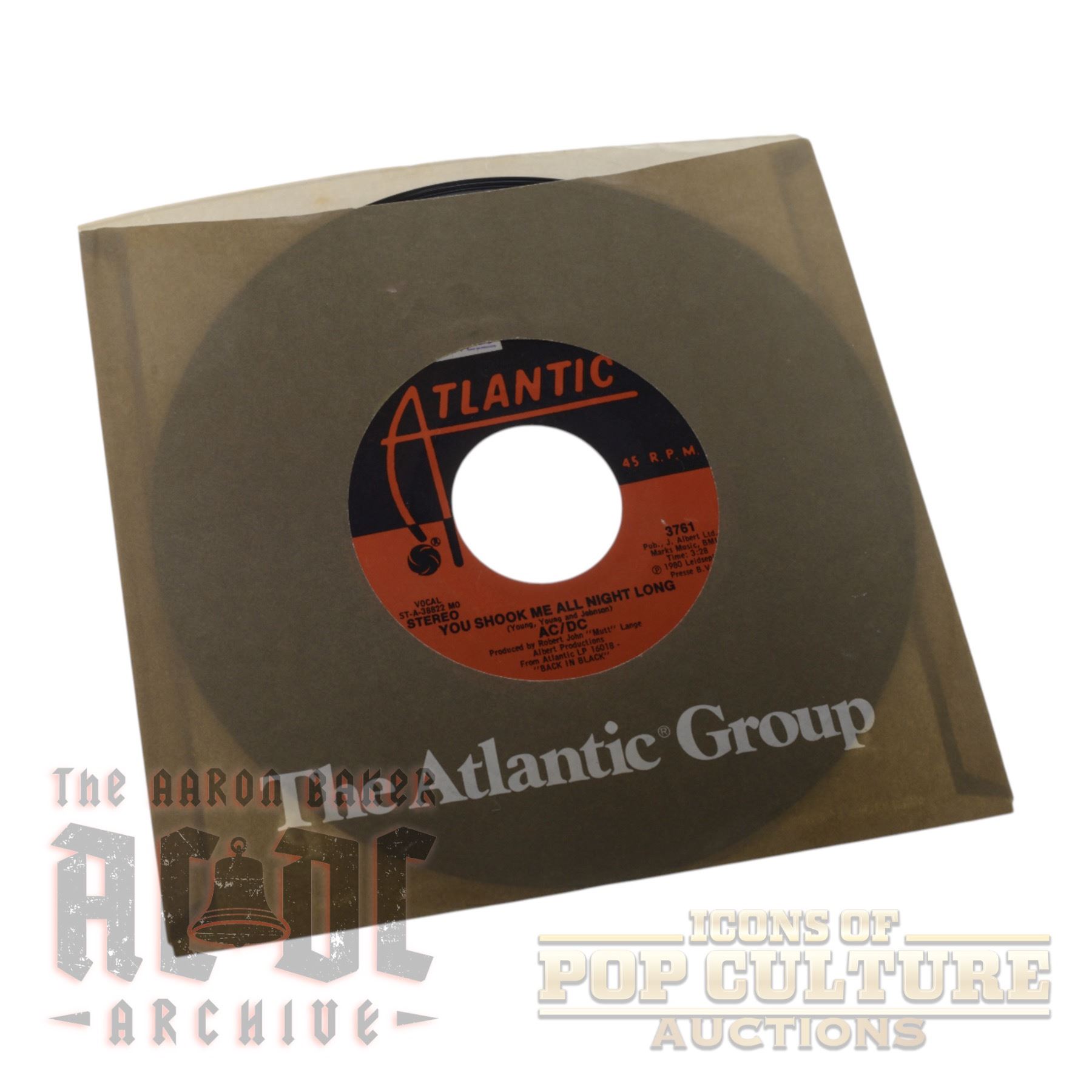 This 7-inch vinyl single was released in the U.S. by Atlantic Records in 1980 under catalog number 3761. The A-side features “You Shook Me All Night Long,” written by Angus Young, Malcolm Young, and Brian Johnson, and produced by Robert John “Mutt” Lange. It was the first single released from AC/DC’s landmark album Back in Black and became one of the band’s most enduring hits, reaching No. 35 on the Billboard Hot 100. The B-side, “Have a Drink on Me,” is another cut from Back in Black, further showcasing the band’s hard-rock sound during the early Brian Johnson era. This pressing represents a pivotal moment in AC/DC’s career, marking their commercial breakthrough in the U.S. and cementing Back in Black as one of the best-selling rock albums of all time.