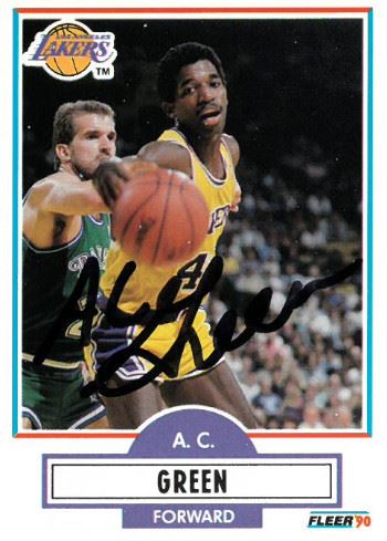 AC Green played in more consecutive games than any other player in NBA and ABA history. With 1,192 straight games played, he earned the nickname "Iron Man". He played for the Los Angeles Lakers, Phoenix Suns, Dallas Mavericks and Miami Heat. He played in 1278 out of 1281 games in his career (99.8%), with the three he missed coming in his second season, 1986–87. AC Green has hand signed this Los Angeles Lakers 1990-91 Fleer Basketball Trading Card #92. Certificate of Authenticity from Athlon Sports Collectibles.