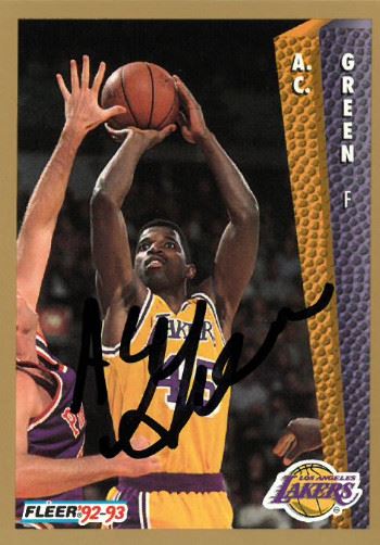 AC Green played in more consecutive games than any other player in NBA and ABA history. With 1,192 straight games played, he earned the nickname "Iron Man". He played for the Los Angeles Lakers, Phoenix Suns, Dallas Mavericks and Miami Heat. He played in 1278 out of 1281 games in his career (99.8%), with the three he missed coming in his second season, 1986–87. AC Green has hand signed this 1992-93 Fleer Basketball Trading Card #108. Certificate of Authenticity from Athlon Sports Collectibles.