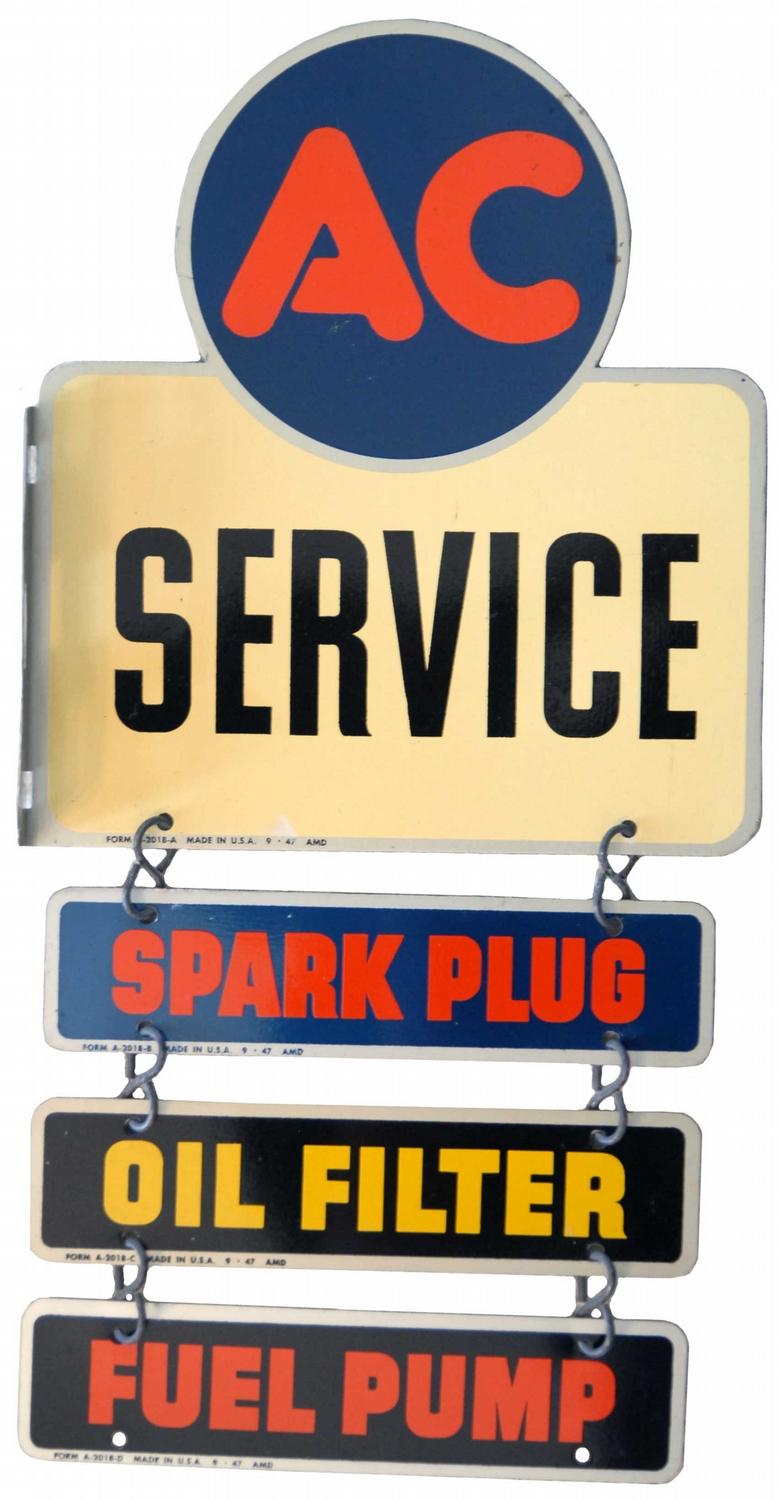 AC Service Double Side Tin Flange Sign. NOS. Near mint condition. 10 X 21 1/2 inches.