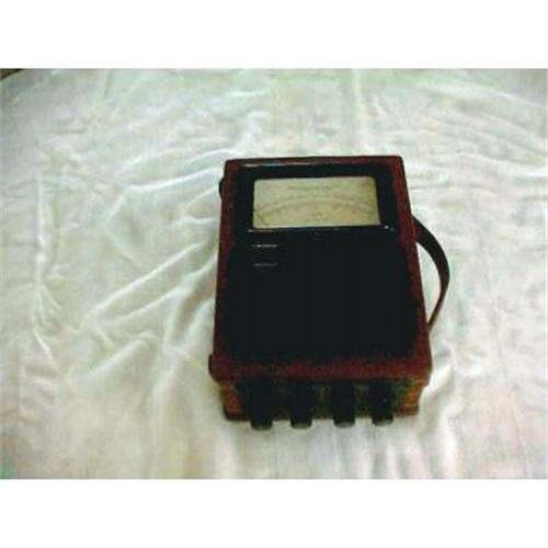 Signed on the dial(Made in England by EVERSHED & VIGNOLES LTD) Regd Trademark "Megger" INCORPORATING WESTINGHOUSE METAL RECTIFIER.To be used with dial Horizontal Volts AC 40-100-500 cycle. This meter is designed for field use having a brass cover to protect the dial. The case has two lead seals stamped SEV. The case is constucted of Walnut using handmade dove tails, and brass screws in brass sockets. The meter scale is marked for 12-300-600 AC Volts - The case has separate thumb screw connectors for each scale. The meter has been tested and all scales work as designed. The walnut case has excellent color shows no damage or scratches and has a leather caring handle not stained or worn. There is a provision for zero adjustment below the dial. The dent in the protective cover may be the result of a war injury.