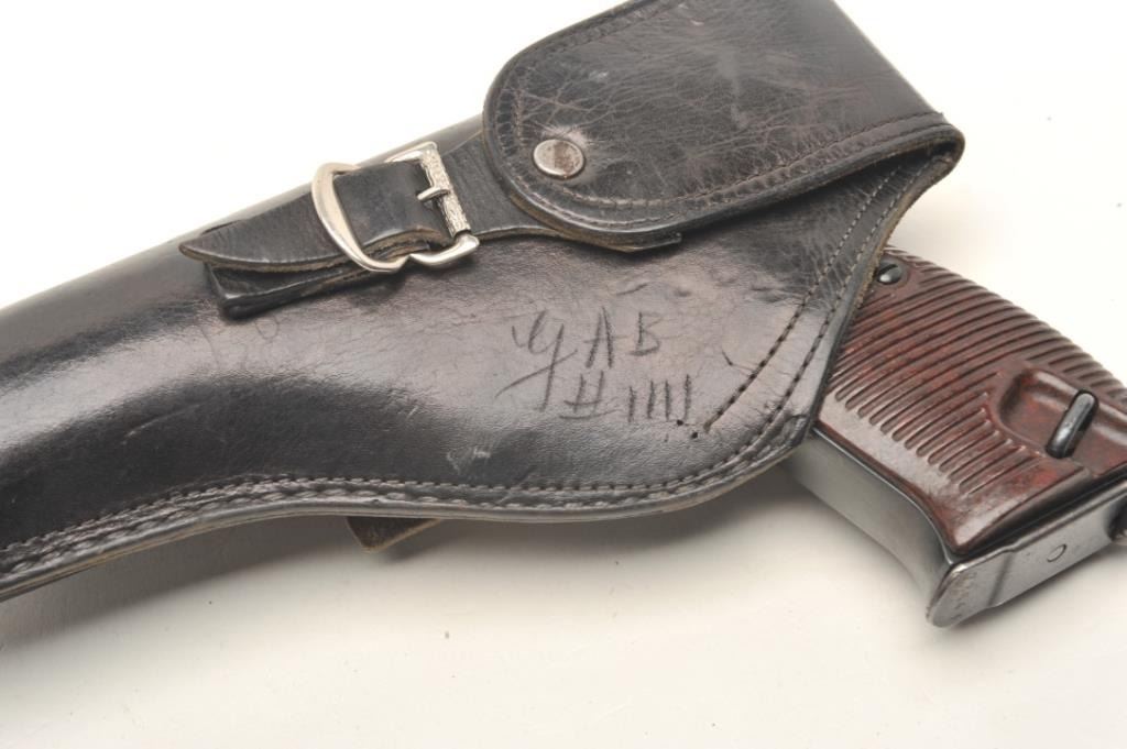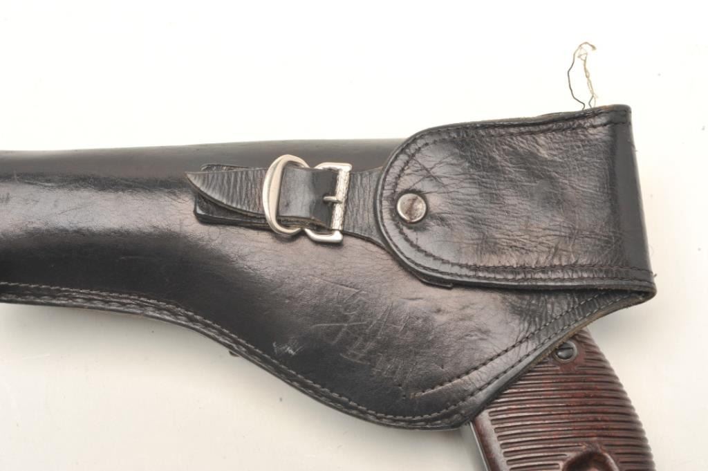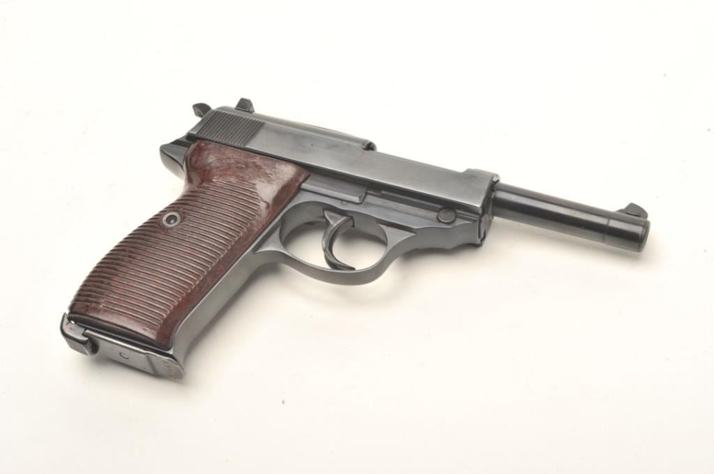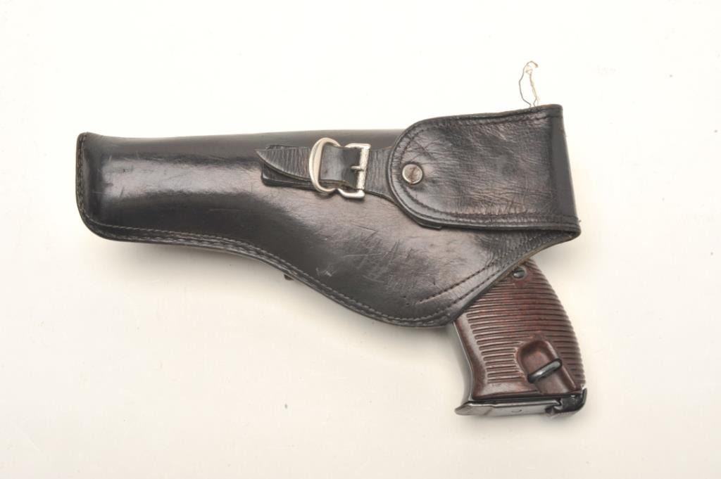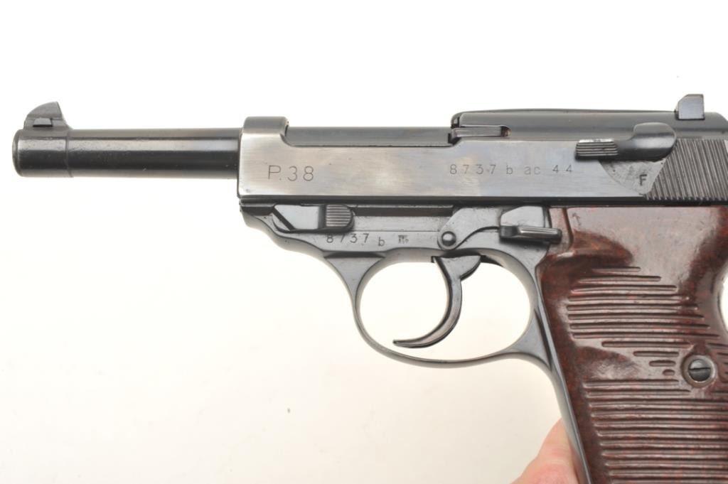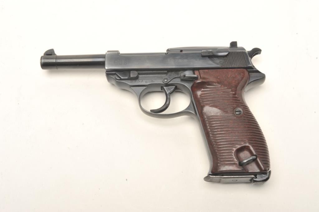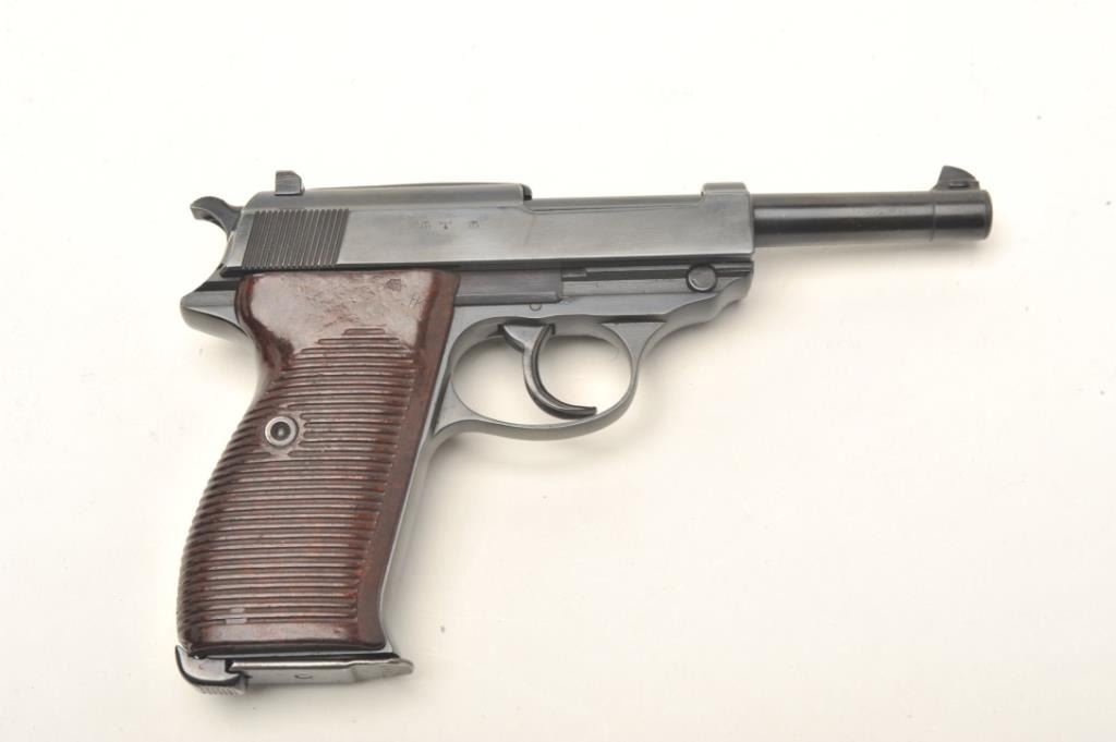 AC44 marked P.38 showing very good old refinish of which 98% remains along with crisp grips and good markings along with bright bore. Accompanied by a non-original and two later clips. Good shooter. (C&R/PPT)Est.: $250-$500