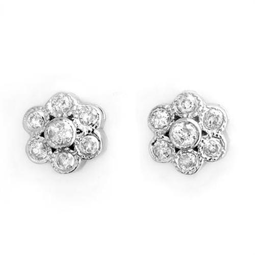 Fresh and feminine in a floral design. These earrings are done with a round, bezel-set diamond in the center and additional smaller round diamonds surrounded the centerstone.<BR><BR>For thousands of years, diamonds, as the birthstone of April, are known for its elegance, brilliance and purity, and also as a woman's best friend.