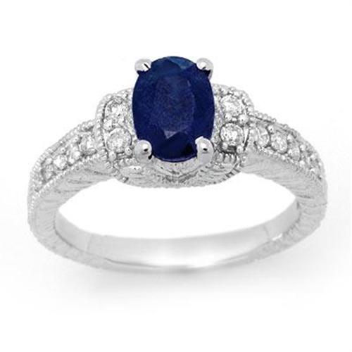 GENUINE 1.75ctw BLUE SAPPHIRE & DIAMOND RING IN 14KT WHITE GOLD
