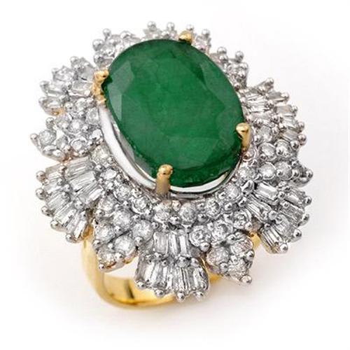 VINTAGE STYLE 11.65 ctw EMERALD & DIAMOND RING IN 14K YELLOW GOLD