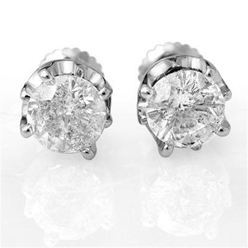 GENUINE 2.0 ctw DIAMOND STUD LADIES EARRINGS IN 14K WHITE GOLD