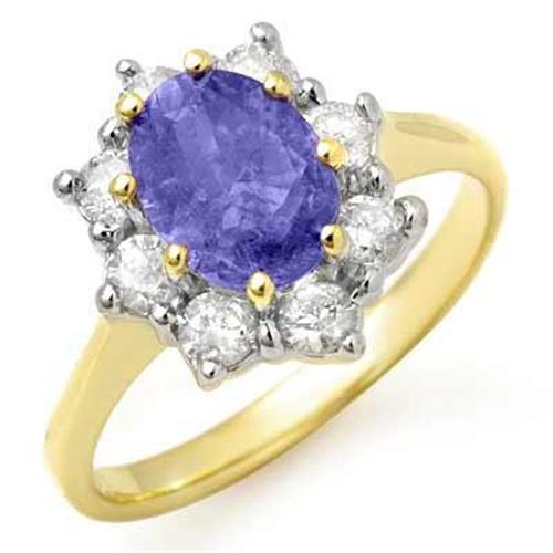 GENUINE 2.75 ctw TANZANITE & DIAMOND RING IN 14KT YELLOW GOLD