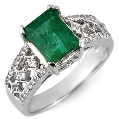 GENUINE 2.75 ctw DIAMOND & EMERALD LADIES RING IN 14K WHITE GOLD
