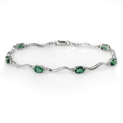 Treat yourself to the always-fashionable look of this vivid bracelet. Lovely,oval prong set emeralds alternate with white gold links and diamonds to create this simple, yet stylish look.<BR><BR>Also known as the traditional gemstone for the astrological signs of Cancer and Taurus.