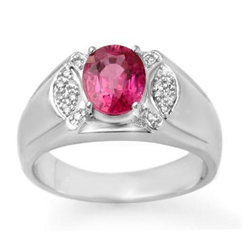 ACA CERTIFIED 3.15ctw PINK SAPPHIRE & DIAMOND MEN'S RING IN 10KT WHITE GOLD