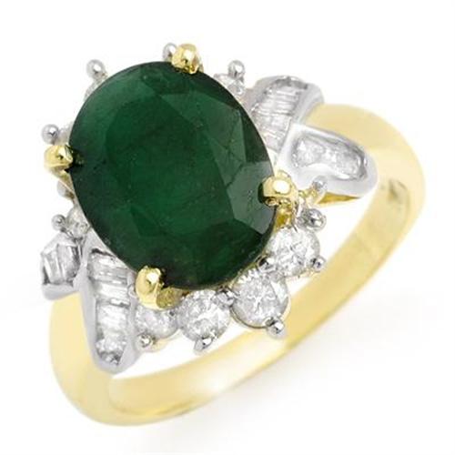 VINTAGE STYLE 3.27 ctw EMERALD & BAGUETTE DIAMOND RING IN 14KT YELLOW GOLD