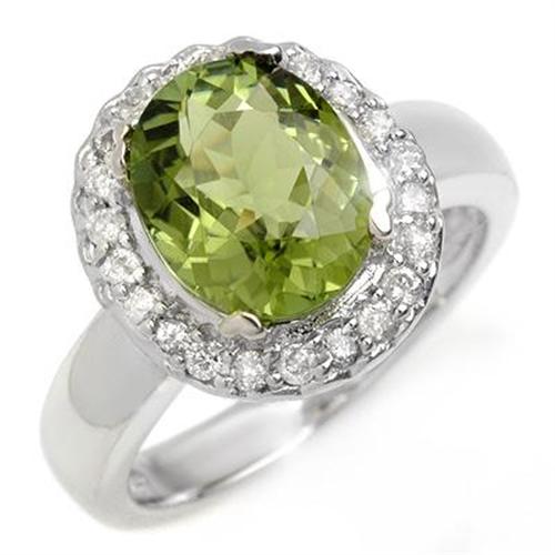 GENUINE 3.40 ctw DIAMOND & GREEN TOURMALINE RING IN 10K WHITE GOLD