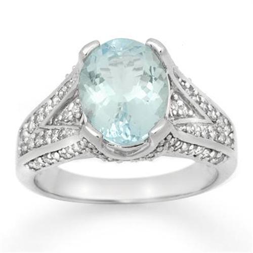 GENUINE 3.95 ctw AQUAMARINE & DIAMOND RING IN 14KT WHITE GOLD