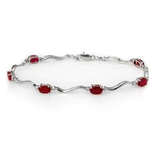 Treat yourself to the glamour. Fancy oval-shaped red ruby gemstones are prong set to sparkle in an east/west direction along this white gold bracelet. Glittering diamonds next to the rubies completes the luxurious look.<BR><BR>This July birthstone is believed to bring courage, power, and good fortune to its owner because of the glowing red color.