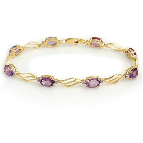 Shimmering splendor. This yellow gold bracelet is graced with amethyst gemstones and diamonds. The oval-cut amethysts are prong set to create each lustrous link. The round, bead-set diamonds glint on either side of each.<BR><BR>This February birthstone, a favorite of Egyptian and British royalty, is believed to have the power to dissipate evil and quicken one's intelligence.