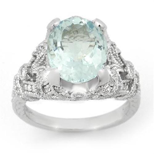 ANTIQUE STYLE 6.10 ctw AQUAMARINE & DIAMOND RING IN 14KT WHITE GOLD