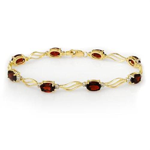 Display a blaze of color with this yellow gold bracelet. Gleaming oval-shaped garnet gemstones are prong-set and separated by a swirl shaped link and glittering diamond accents for just the right amount of shine.<BR><BR>The birthstone of January that comes in a rainbow of color was thought to gives its owner