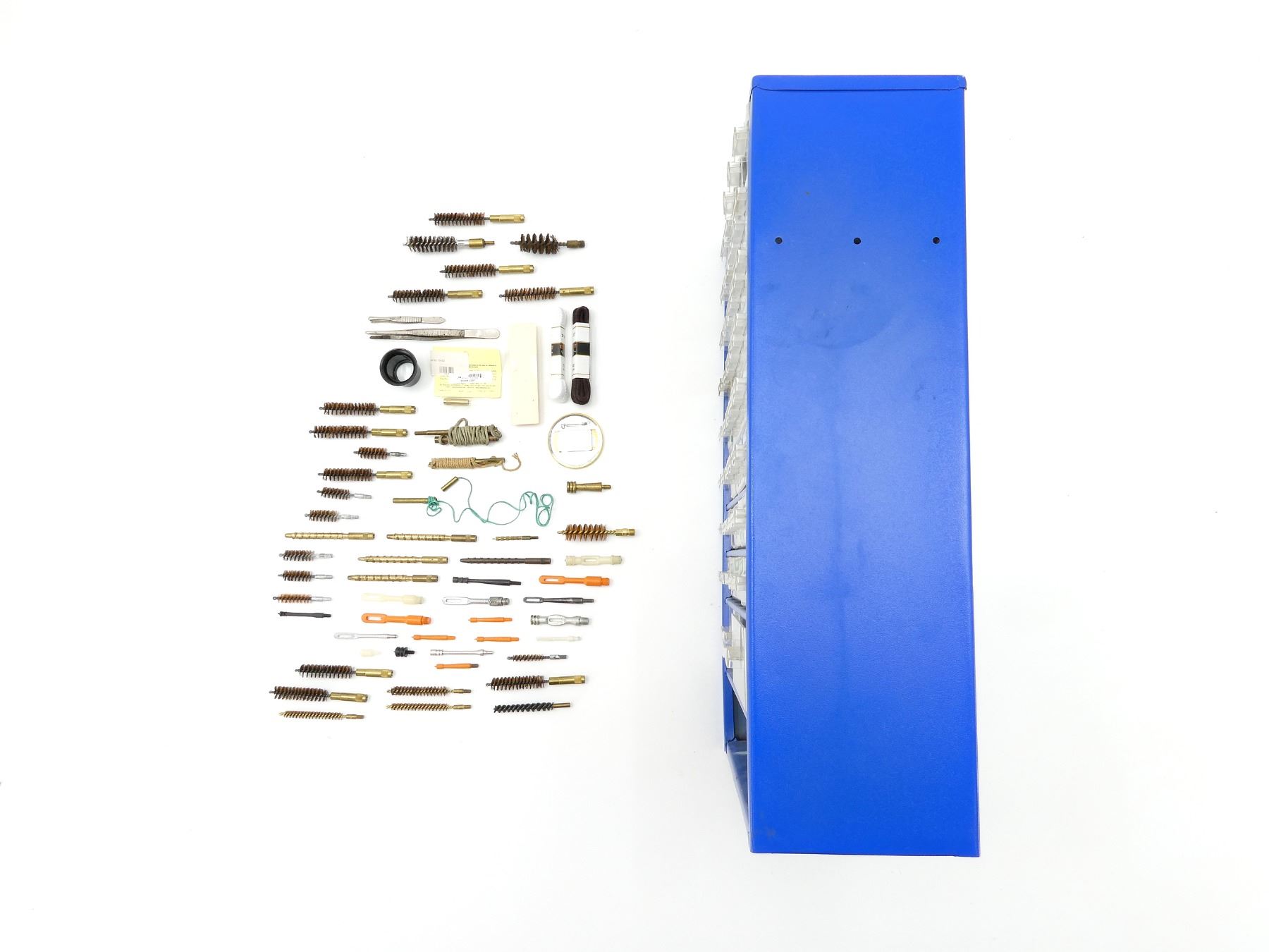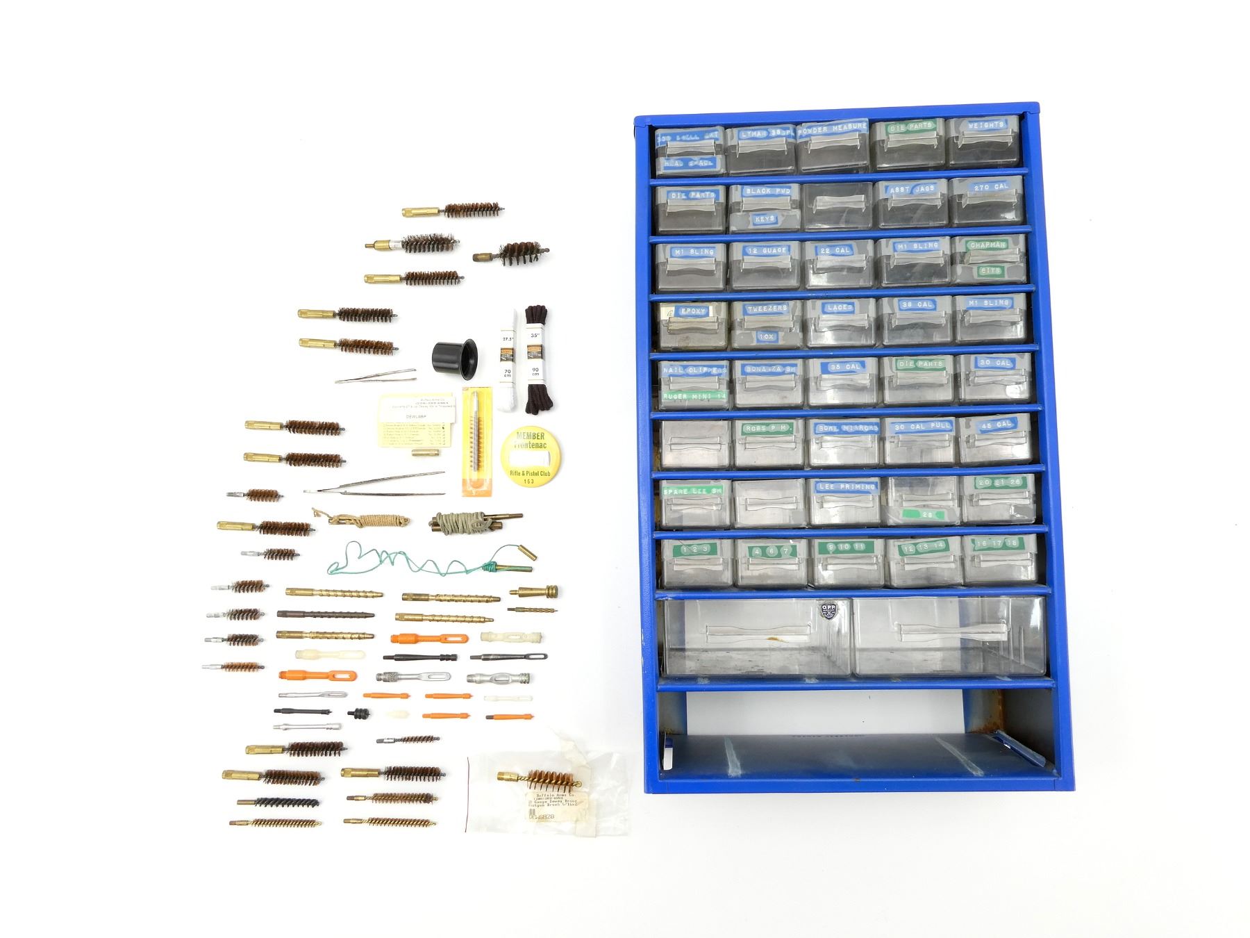 LOT INCLUDES; (1) ACCESSORY ORGANIZER, 42 COMPARTMENTS, OVERALL LENGTH APPROX. 12 1/8" X 5.5" X 20" & (1) BAG OF ASSORTED ACCESSORIES, INCLUDING; CLEANING BRUSHES, CLEANING JAGS, LACES, TWEEZERS, ETC. SEE PHOTOS.