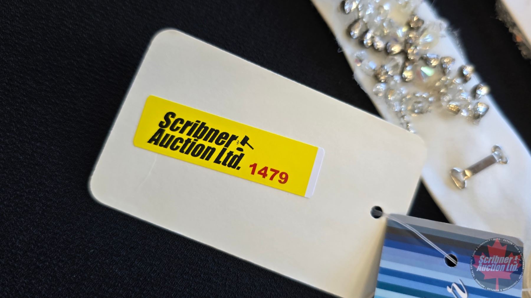 (Listing & Descriptions are a GUIDE ONLY and are subject to changes, errors, additions or deletions. The majority of dresses were fitted/cinched/clamped to mannequins for auction catalog pictures. See Tags in Pictures for Dress / Item Details if tagged. Many or all of the dresses have been tried on in the store as normal retail activity. Winning bidders may want to consider Drycleaning. Please use the provided pictures to satisfy yourself to the Conditions. There will NOT be garment bags provided, please bring your own when picking up dresses after the Auction concludes. Please bring help or assistance to load out store fixtures. Please Read & Understand All Terms & Conditions for this Auction Sale. There is designated dates & times for pick ups after the Auction.)