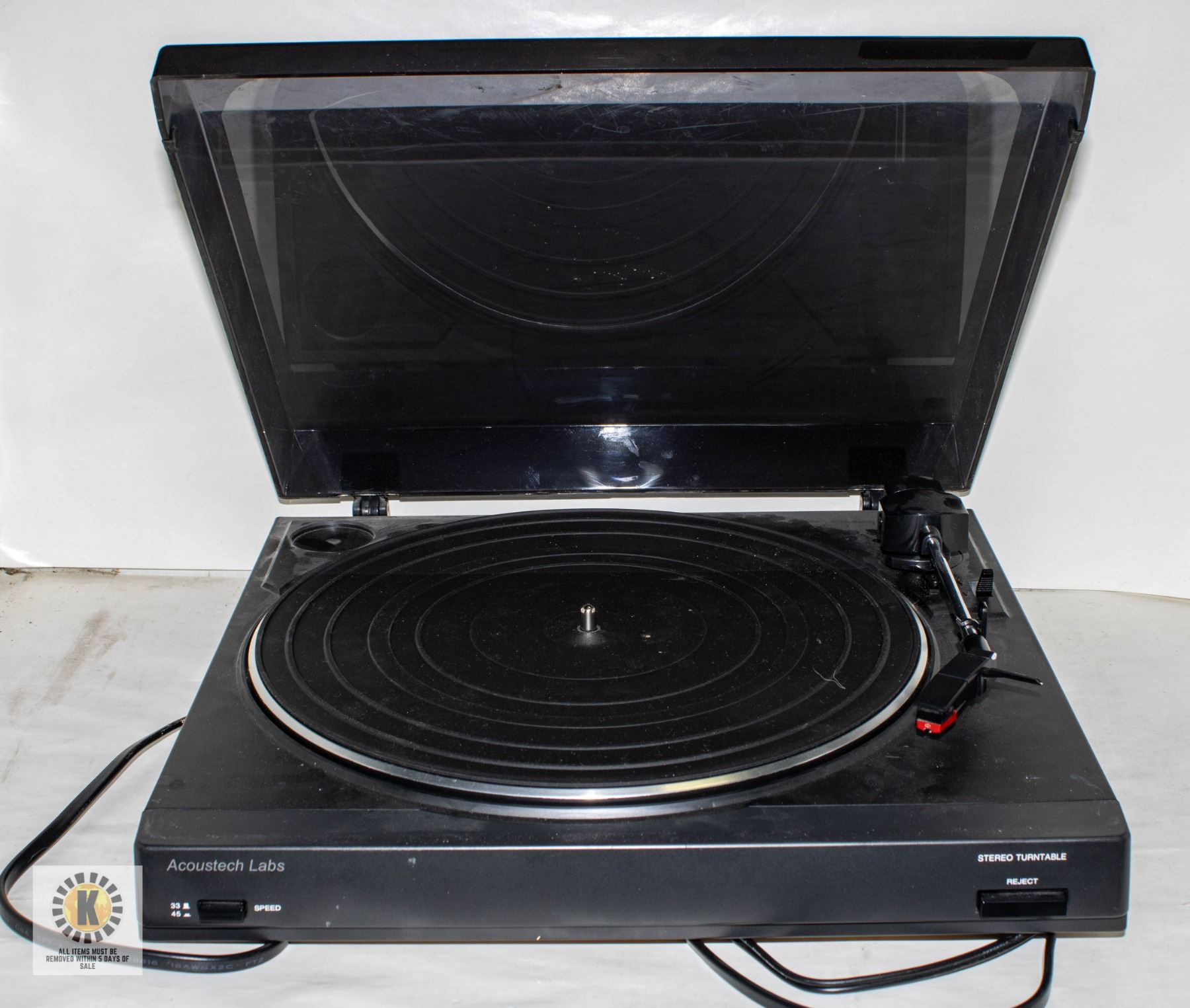 IT TURNS BUT THE SOUND OUTPUT IS DAMPENED. **ALL ITEMS MUST BE REMOVED BY 5PM SATURDAY, APRIL 26TH 2025. ALL REMAINING ITEMS WILL BE SUBJECT TO A $6.00 PER DAY STORAGE CHARGE. ANY ITEMS REMAINING AFTER MONDAY, MAY 12TH 2025 WILL BE CONSIDERED FORFEITED. NO REFUNDS WILL BE ISSUED FOR FORFEITED ITEMS. TO SCHEDULE A PICK UP APPOINTMENT CLICK HERE