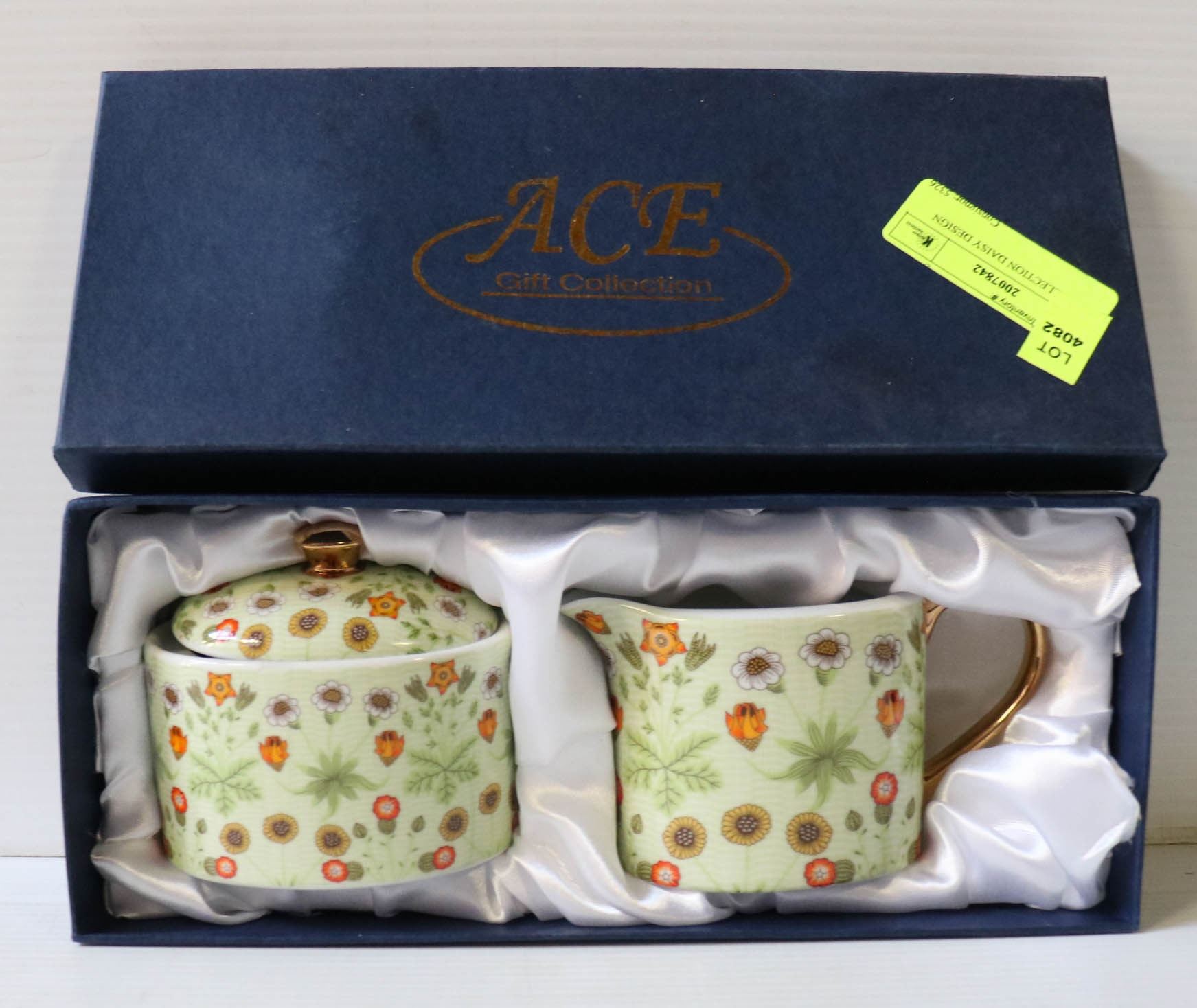 BY WILLIAM MORRIS CREAM/SUGAR SET IN ORIGINAL BOX (UNUSED)
