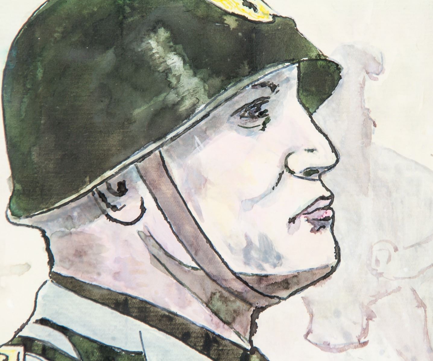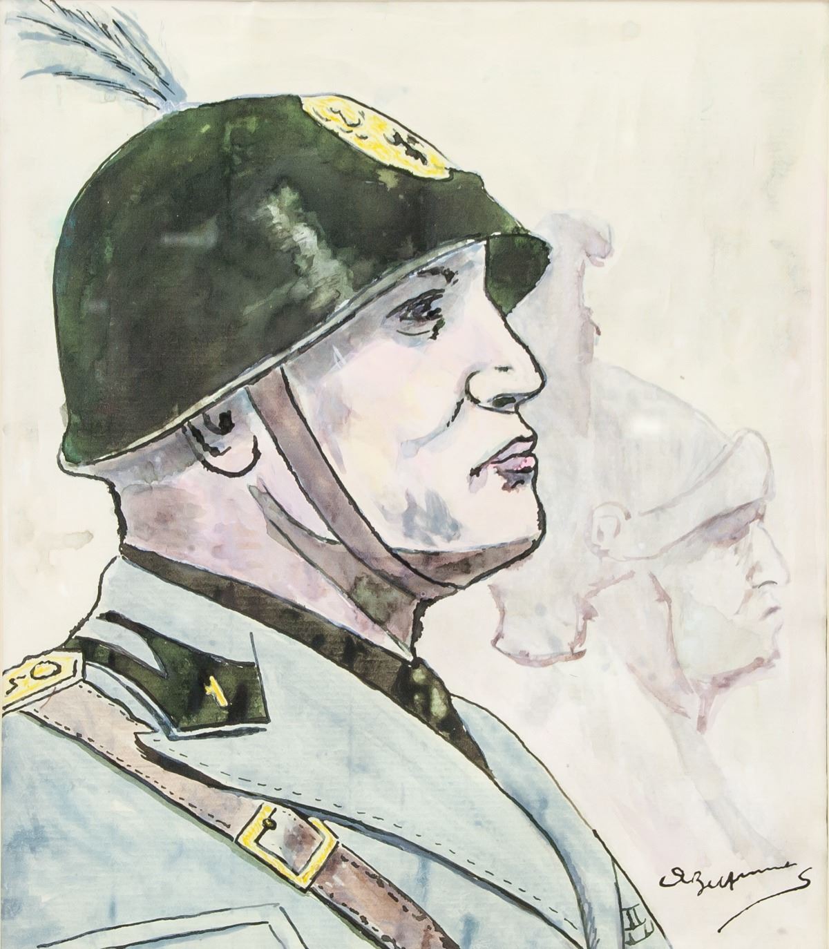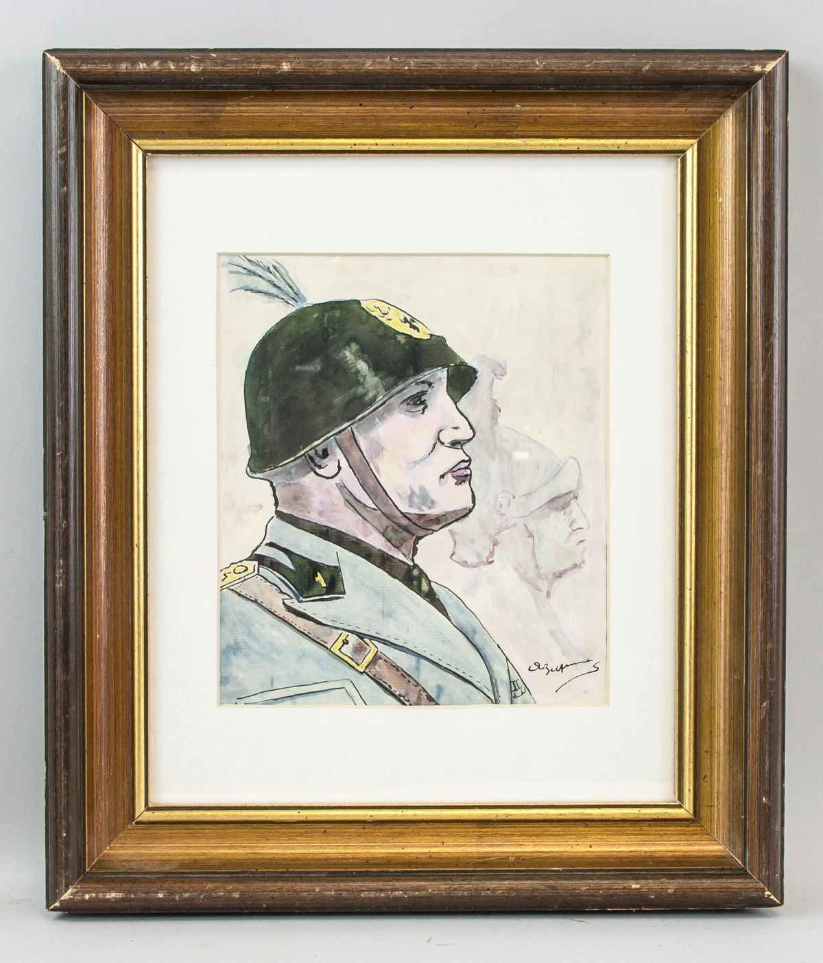 Mixed media on paper, framed. Featuring a soldier. Signed and attr. Achille Beltrame (Italian, 1871-1945) on the lower right corner. Picture size: 20 x 18 cm (7.9 x 7.1 inches), frame size: 39 x 33 cm (15.4 x 13 inches). Achille Beltrame was an Italian painter and illustrator. He initially studied in Vicenza, but then enrolled in the Brera Academy. In 1899, he began working as an illustrator for the newspaper Corriere della Sera and illustrated the La Domenica del Corriere of Milan. He pursued this task for nearly 50 years. PROVENANCE: Southern Ontario estate