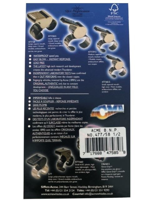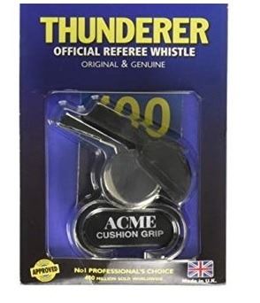 The ACME Thunderer Whistle with Finger Grip is the official whistle of the Canadian Hockey League and the chosen whistle of the top referees and linesman across the hockey world. This large whistle with adjustable finger grip tapered mouthpiece also includes ACME's gator grip mouth guard.