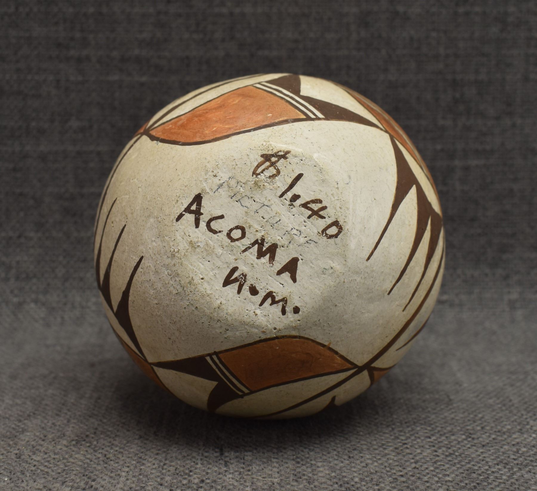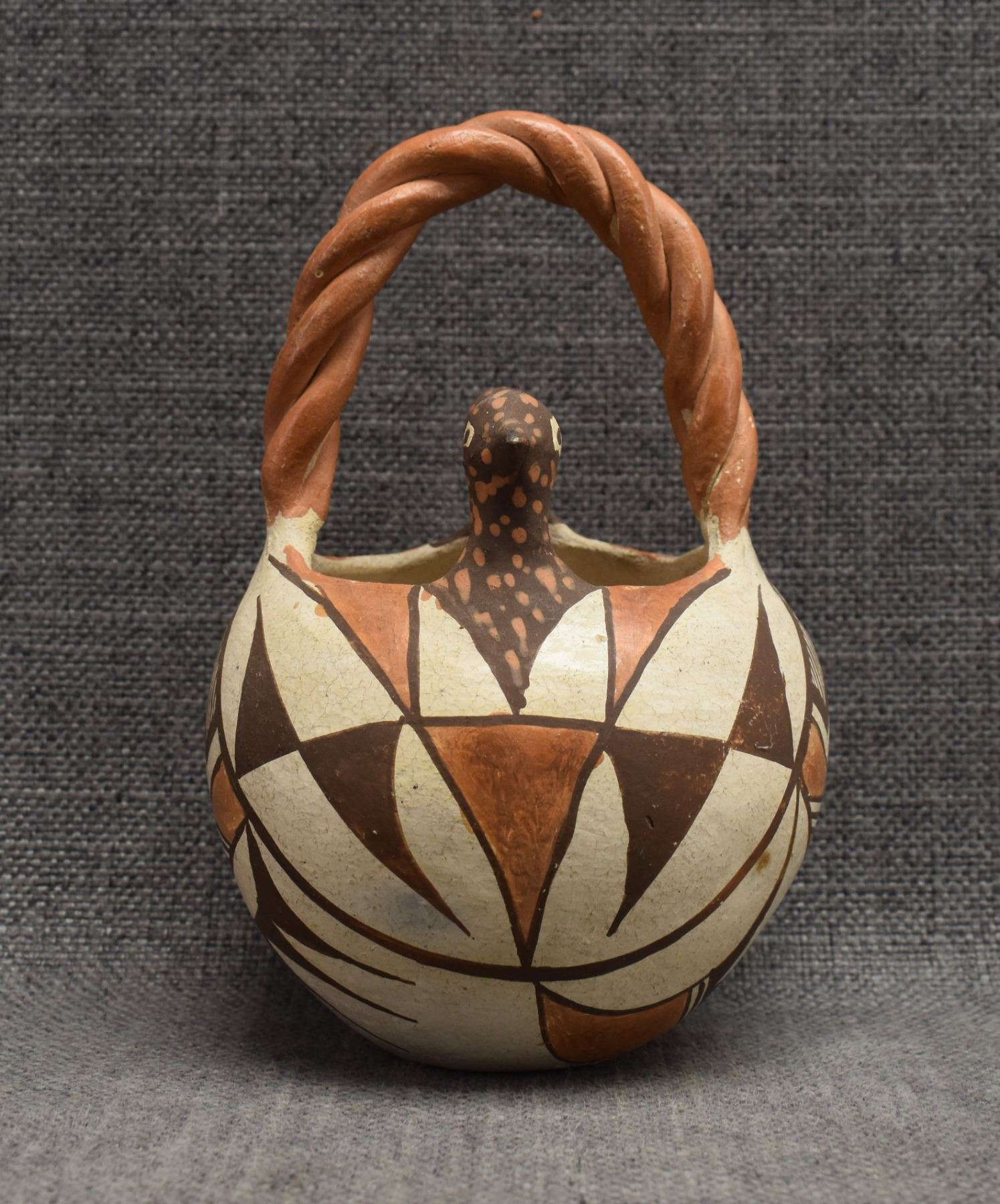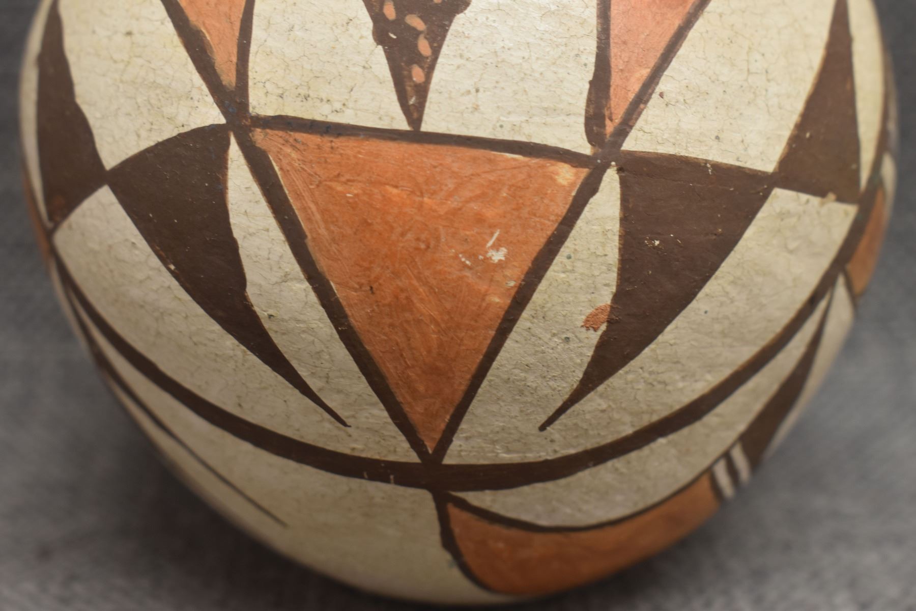 1920's Acoma. Hand coiled and painted polychrome design pottery basket. 6'' x 4''
