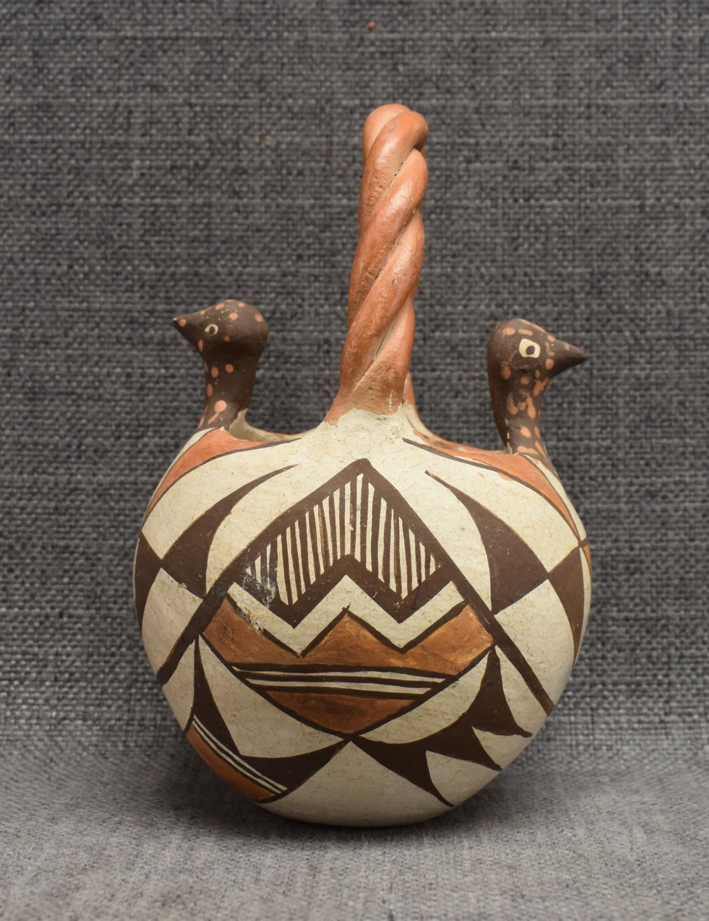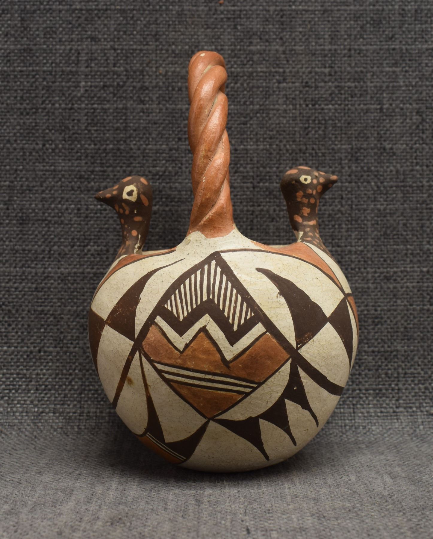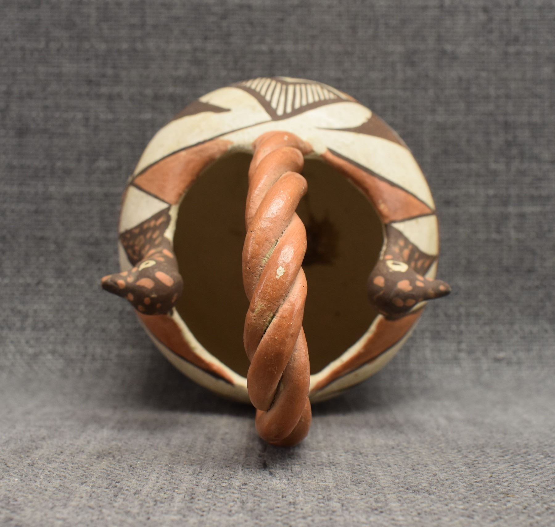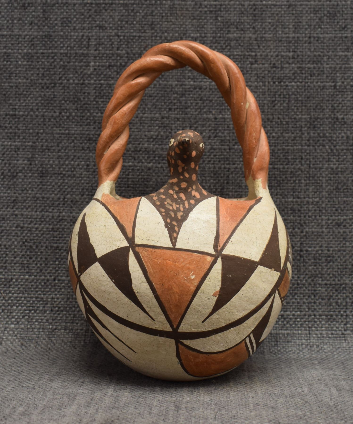 1920's Acoma. Hand coiled and painted polychrome design pottery basket. 6'' x 4''