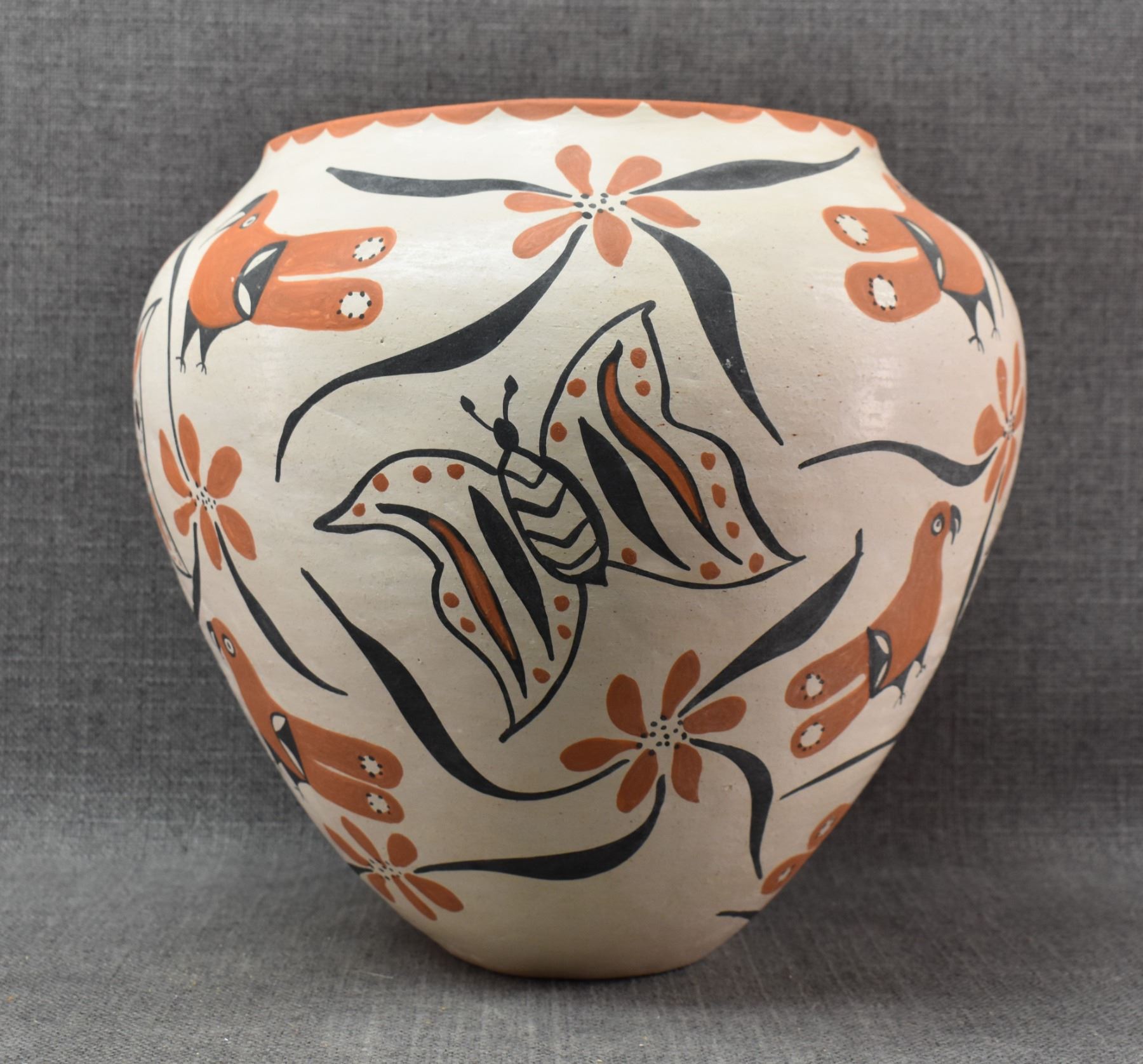 1970's Acoma. Hand coiled and painted design pottery olla. Signed Concho. 10'' x 10''