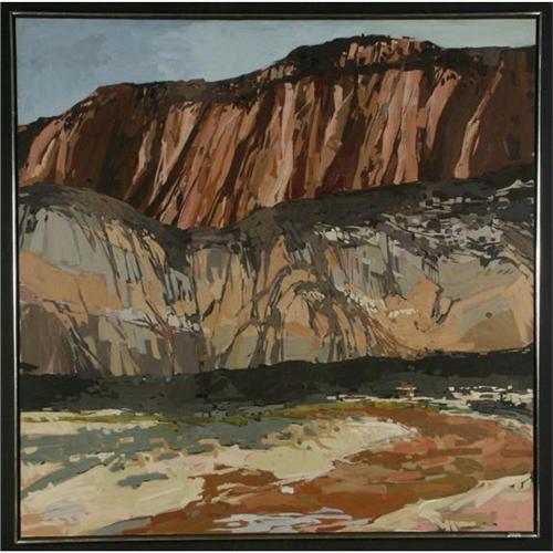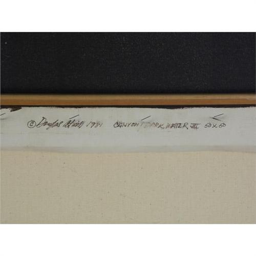 ACRYLIC ON CANVAS 50'' x 50'', Douglas Atwill (1933-), New Mexico. ''Canyon/Dark Water III''. Signed, titled and dated '1981' on the verso. Placed in a fitted wood frame with silver trim. Atwill is a contemporary artist who paints abstractions of the West's deserts.