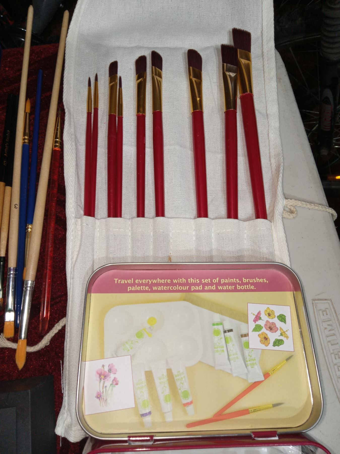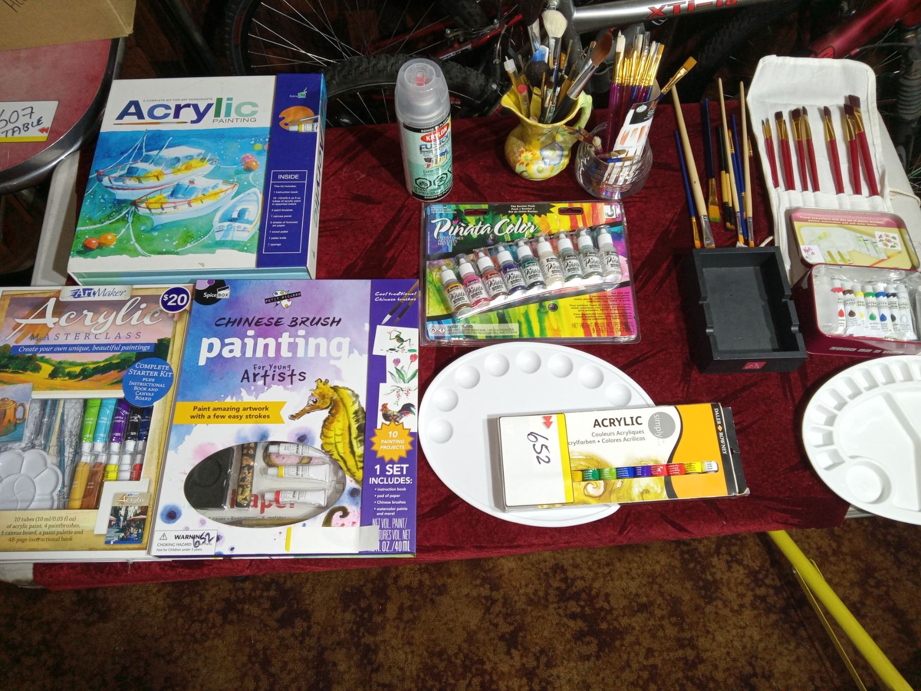 ACRYLIC PAINTS, SUPPLIES AND BRUSHES