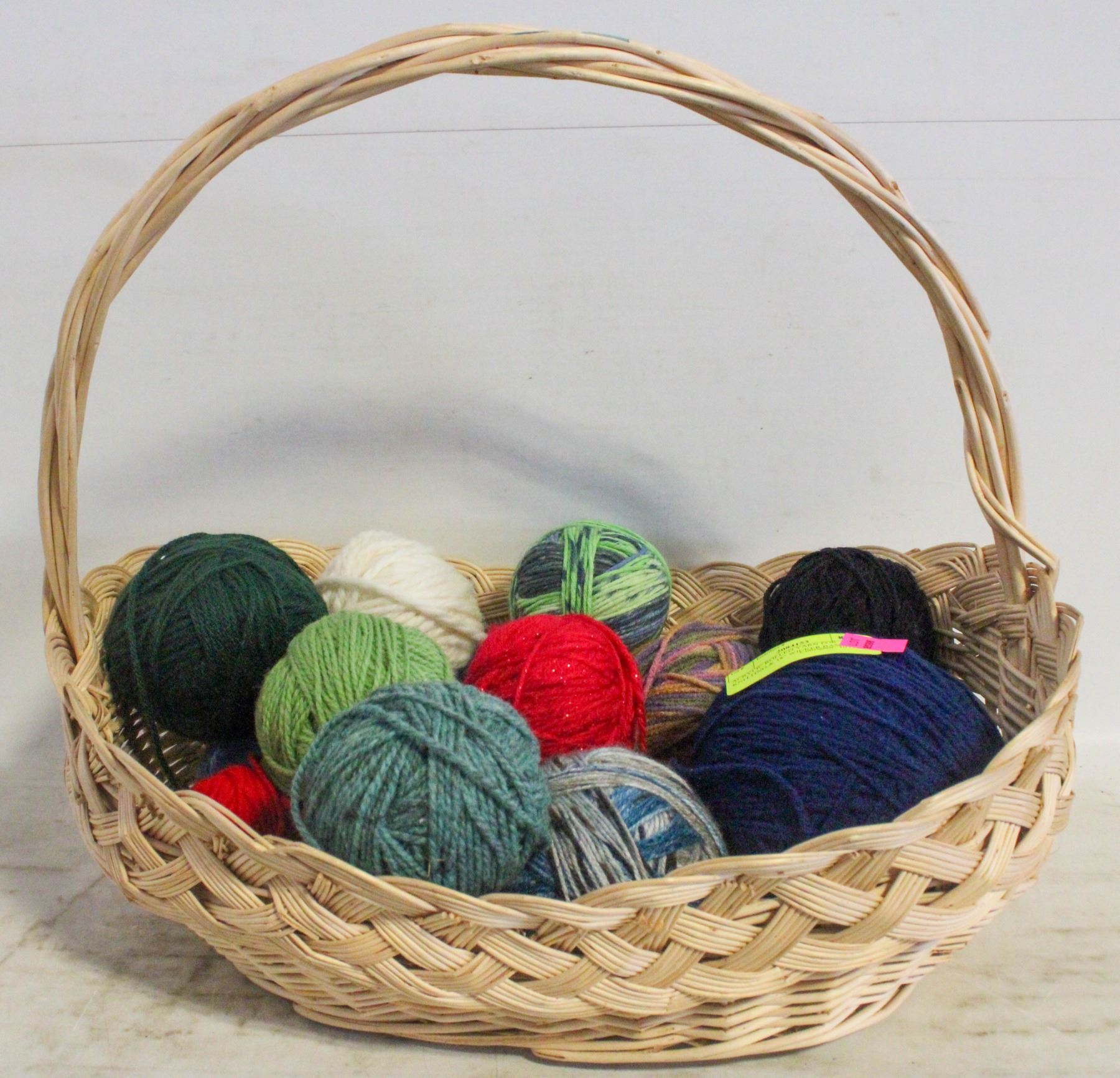 ACRYLIC ROLLED YARN FOR KNITTING & 18" WICKER BAS