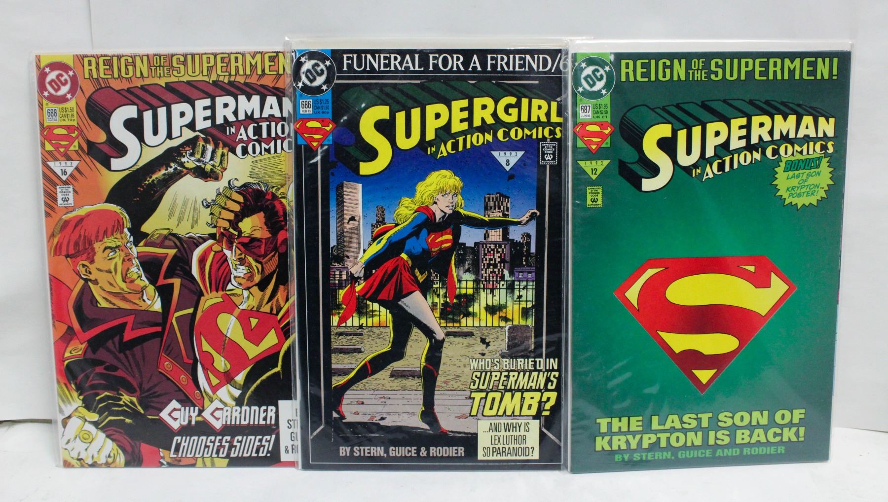 1ST SOLO STORY OF THE ERADICATOR (LAST SON OF KRYPTON) AND THE REGENERATON MATRIX; DIE-CUT SUPERMAN LOGO COVER; 3 COMICS