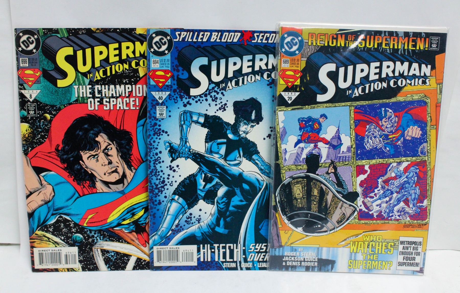 RESURRECTION OF SUPERMAN AND 1ST APPEARANCE OF HIS BLACK SUIT; 3 COMICS
