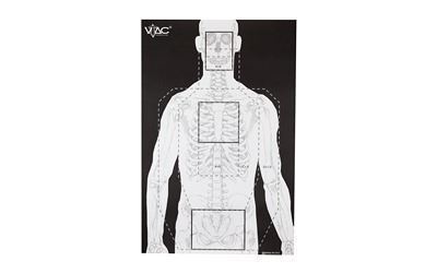 Action Target, VTAC-P, Viking Tactics Double Sided Advanced Training Target, Marksmanship Side Has 4 SR-1C Bulls-Eye Target w/1" Square Sighting Grid, Silhouette Side w/Visible Skeleton, Black/White, 23"x35", 100 Per Box