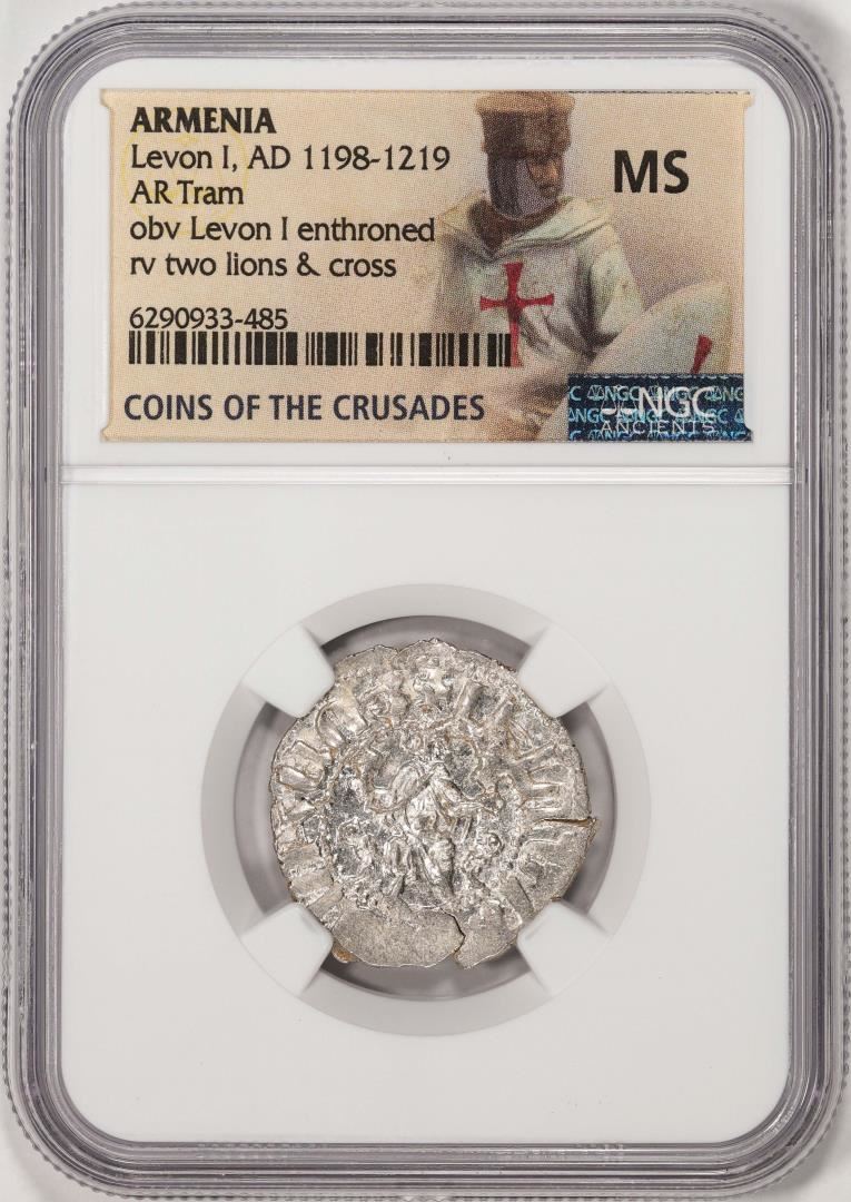 One AD 1198-1219 Armenia Levon I AR Tram Anceint Coin NGC MS. NGC Certified.